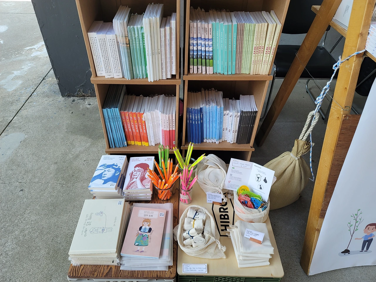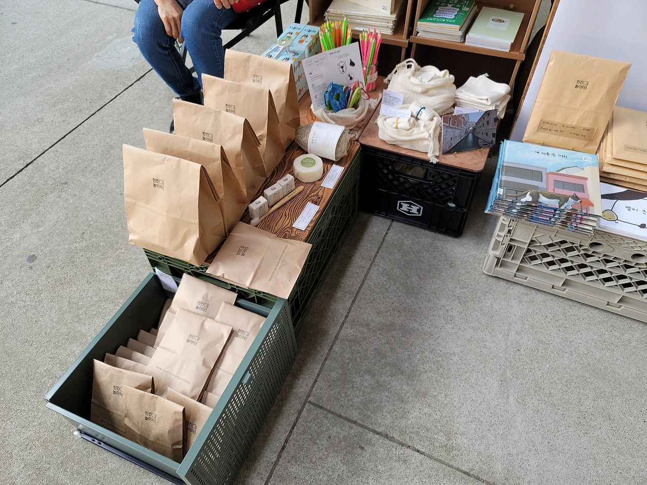 하나 둘 짐을 꺼내어 책과 제로웨이스트 제품과