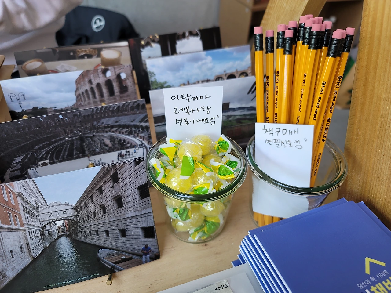빈칸놀이터에서는 책구매하면 연필을 드리고 있는데