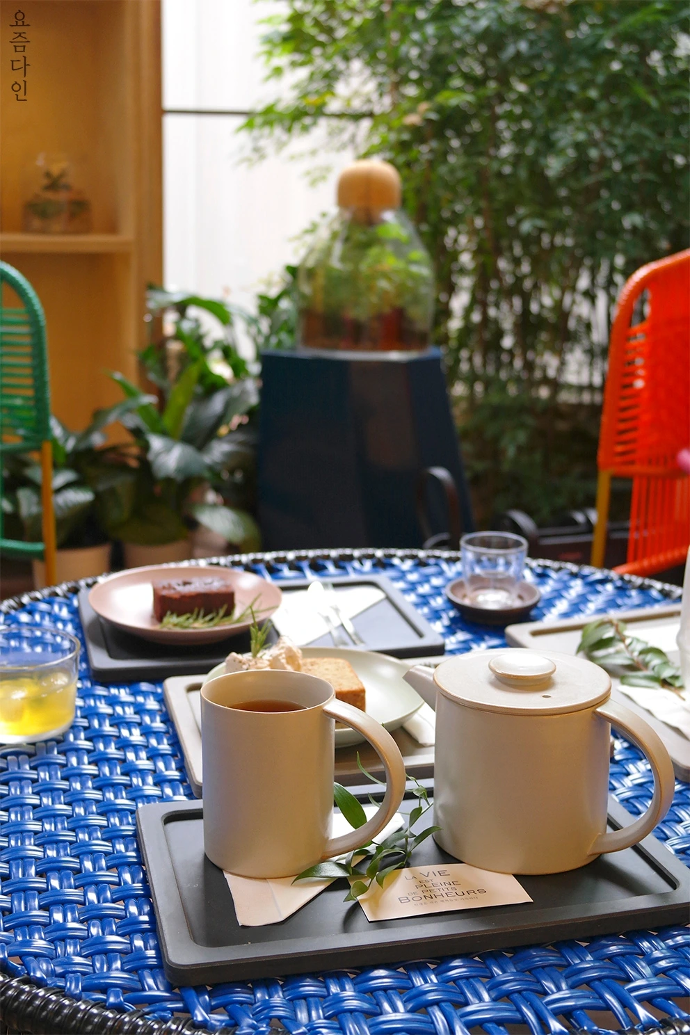 순간에 기꺼이 집중하도록 만드는 것은 꽤 많이 중요합니다. 그 순간 나에게 가장 중요한 것에 대한 우선순위가 완전히 달라지지요. 심지어 내가 원하기 때문에 자발적으로 집중하는 시간이니 그 효과는 좀 더 강력합니다. 편안한 자연광과 잔잔한 음악, 좋은 풍경처럼 지금 이 시간을 더 즐겁게 집중할 수 있는 좋아하는 환경이 갖추어져 있다면 금상첨화네요. 이렇게 자진해서 집중하다 보면 당연히 일상에서 나를 괴롭히는 생각들이 기세를 못 펴고 물러나 있지 않겠어요? 바로 그렇기 때문에 평소에는 사무실 다도를 하며 짧게 툭툭 털어냈다면, 가끔 좋은 곳에서 좋아하는 차를 느긋하게 마시며 복잡한 머릿속과 무거운 마음을 비우고 깨끗하게 쓸고 닦아 다시 새로운 것들을 채울 수 있게 만드는 시간이 필요합니다.