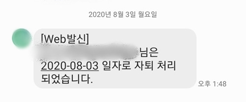 자퇴 처리되었습니다
