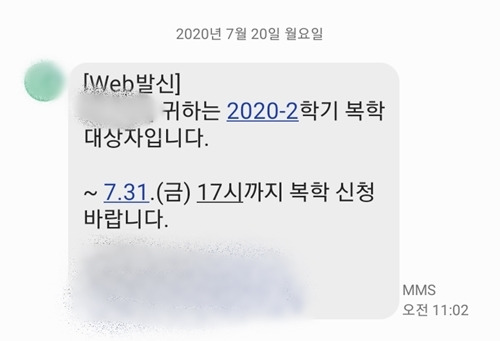 2020년 7월 20일 오전 문자가 왔다.