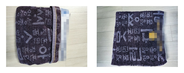 4. 비닐봉지에 담긴 수건은 마른 수건에 다시 한번 감싸준다. 마른 수건이 아닌 다른 천을 이용해도 된다.