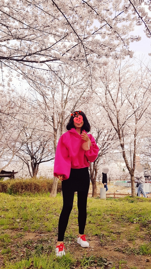 올해 4월 딸이 그토록 그리던 벚꽃을 5년 만에 볼 수 있었다며 환하게 웃고 있다.
