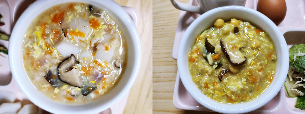 느타리버섯 카레 오트밀 죽 / 목이버섯과 병아리콩 넣은 오트밀 죽