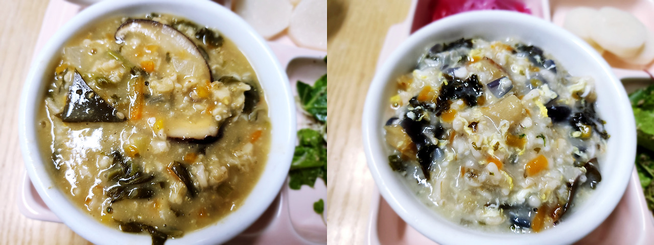 시래기 오트밀 죽 / 김을 넣은 황태 오트밀 죽(김은 불을 끄고 넣었어요)