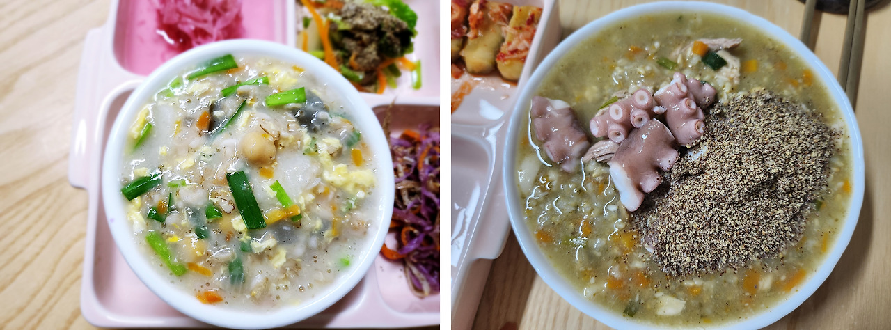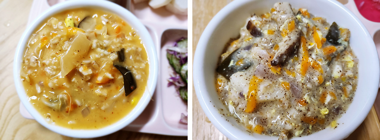 김치 콩나물 오트밀 죽 / 밤호박 오트밀 죽
