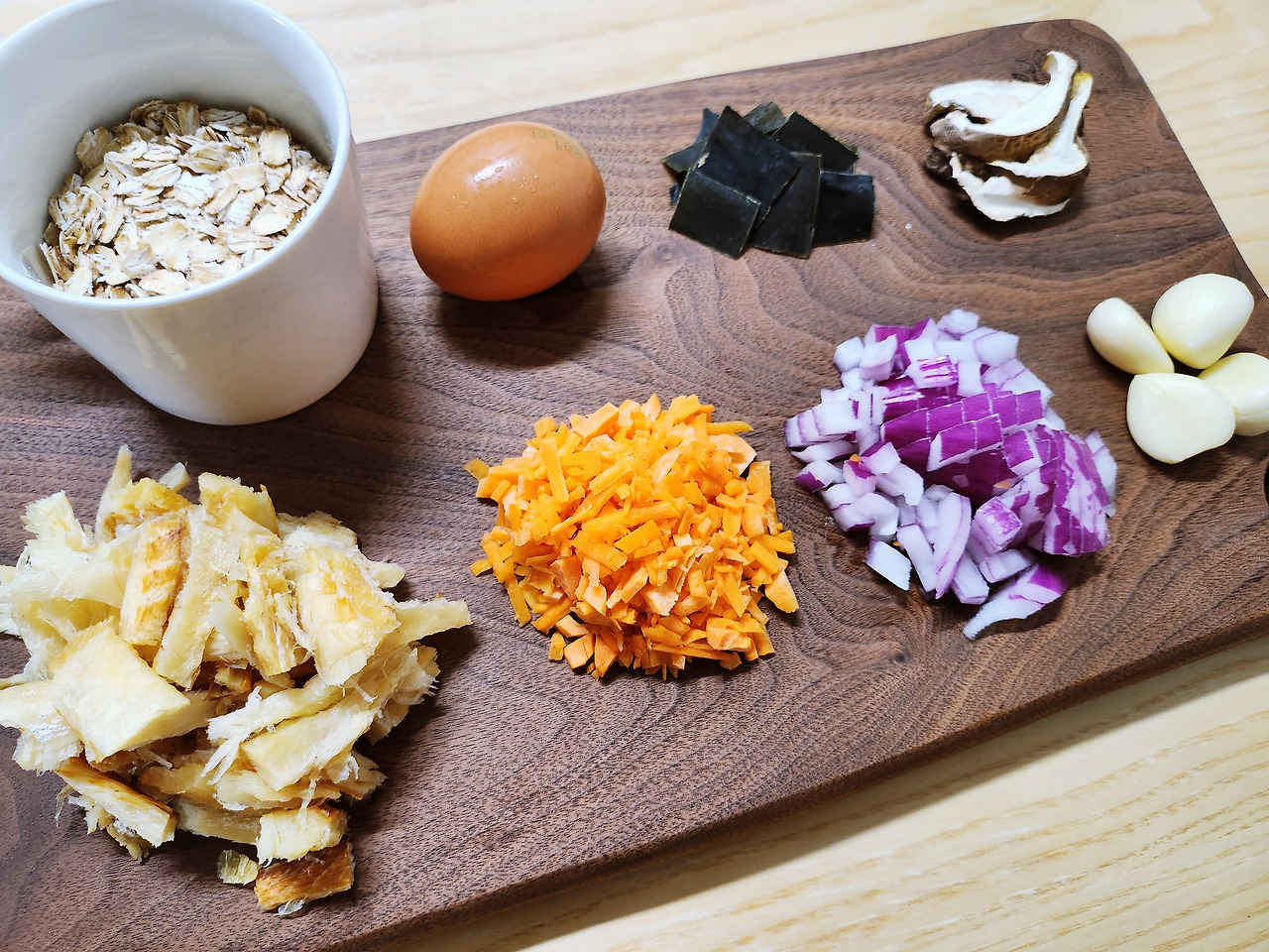 오늘 제가 소개할 오트밀 죽은 바로황태 오트밀 죽인데요. 황태는 소화가 잘되는 단백질 식품입니다. 단백질 소화가 어려운 분에게 추천하고 싶은 식품 중 하나가 바로 황태! 간을 보호해 주는 메티오닌과 피로회복에 도움 되는 아미노산이 풍부하다고 해요. 황태는 해독작용과 피로회복에 도움이 되기 때문에 기운이 없거나 숙취 해소가 필요한 분들이 자주 찾는 대표 음식이기도 하죠.