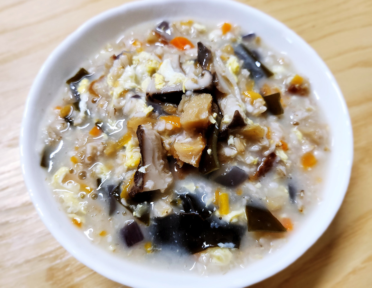 죽이지만 오트밀과 황태가 만나니까 보양식이 되네요. 일단 먹어보면 느낌 알 수 있어요. 말로는 설명이 안 되는 힘이랄까요? 기운이 없던 딸도 황태를 넣은 국이나 죽을 끓여 주면 먹기 전과 먹은 후 컨디션이 조금 더 나아진다고 해요. 무거웠던 몸이 조금은 가벼워지는 느낌이 있다고 합니다. 저 역시 먹기 전과 먹고 난 다음 몸이 확실히 다르다는 걸 느껴요.
