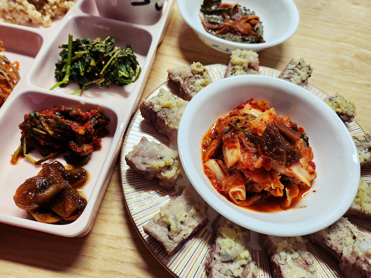 2주 전 김치를 담가서 마늘 보쌈과 함께 먹었다. 딸과 나는 며칠 굶은 듯 정신없이 폭풍 흡입을 했다. 먹는데 정신이 팔려 사진은 찍지 못했다. 김치를 담가서 한 통은 냉장고에 바로 넣고 한 통은 이틀 동안 발효시킨다. 갓 버무린 김치보다는 적당히 발효된 김치를 딸은 더 좋아한다. 다음부터는 김치 담가서 전부 발효시켜 먹어야겠다.
