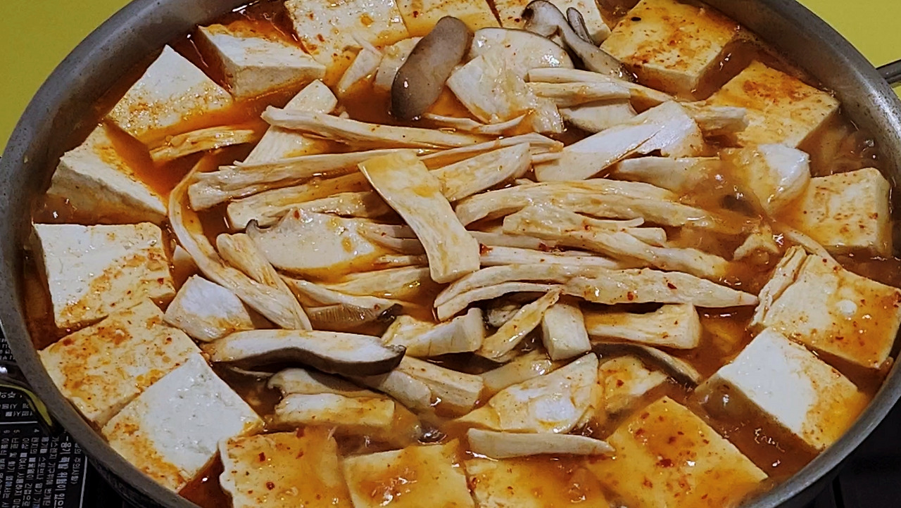 과거와는 다르게 국과 찌개가 순한 맛으로 탈바꿈했으나 충분히 맛있다고 느끼기에 딸과 나는 여전히 만족한 식사를 즐기고 있다. 오늘 내가 요리한 돼지고기 김치찌개는 딸아이와 나의 건강을 고려해서 최대한 자극적인 맛을 중화할 수 있는 채소와 버섯을 듬뿍 넣었다. 건표고와 건다시마로 진하고 깊은 맛이 느껴지는 국물을 우려내고 고기는 기름이 적은 목살을 선택했다.