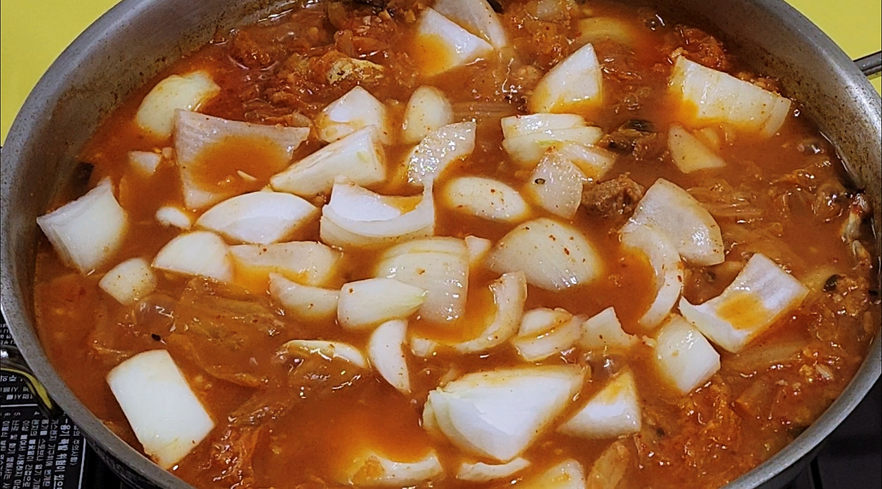 나만의 레시피 돼지고기 김치찌개가 완성되면 딸이 맛있게 먹는 딸만의 방법이 있다.