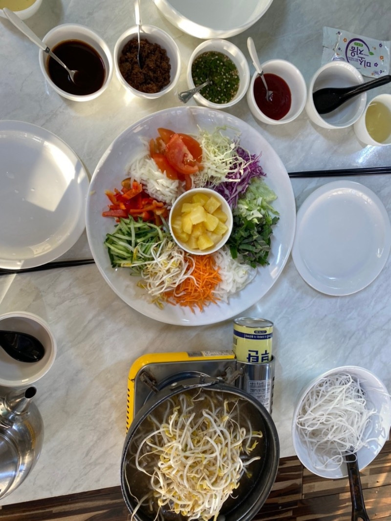 사장님께서 먹는 방법을 소개해 주는데... 여긴 특수비법소스랑 육포가 월남쌈을 더 맛있게 먹을 수 있게 해 주고 나오는 육수국물은 나의 속을 따뜻하게 해 주었다. 음식도 맛있는데 여긴 일몰명소로도 유명해서 꼭 예약해서 가보면 좋은 시간을 보낼 수 있을 것이다.