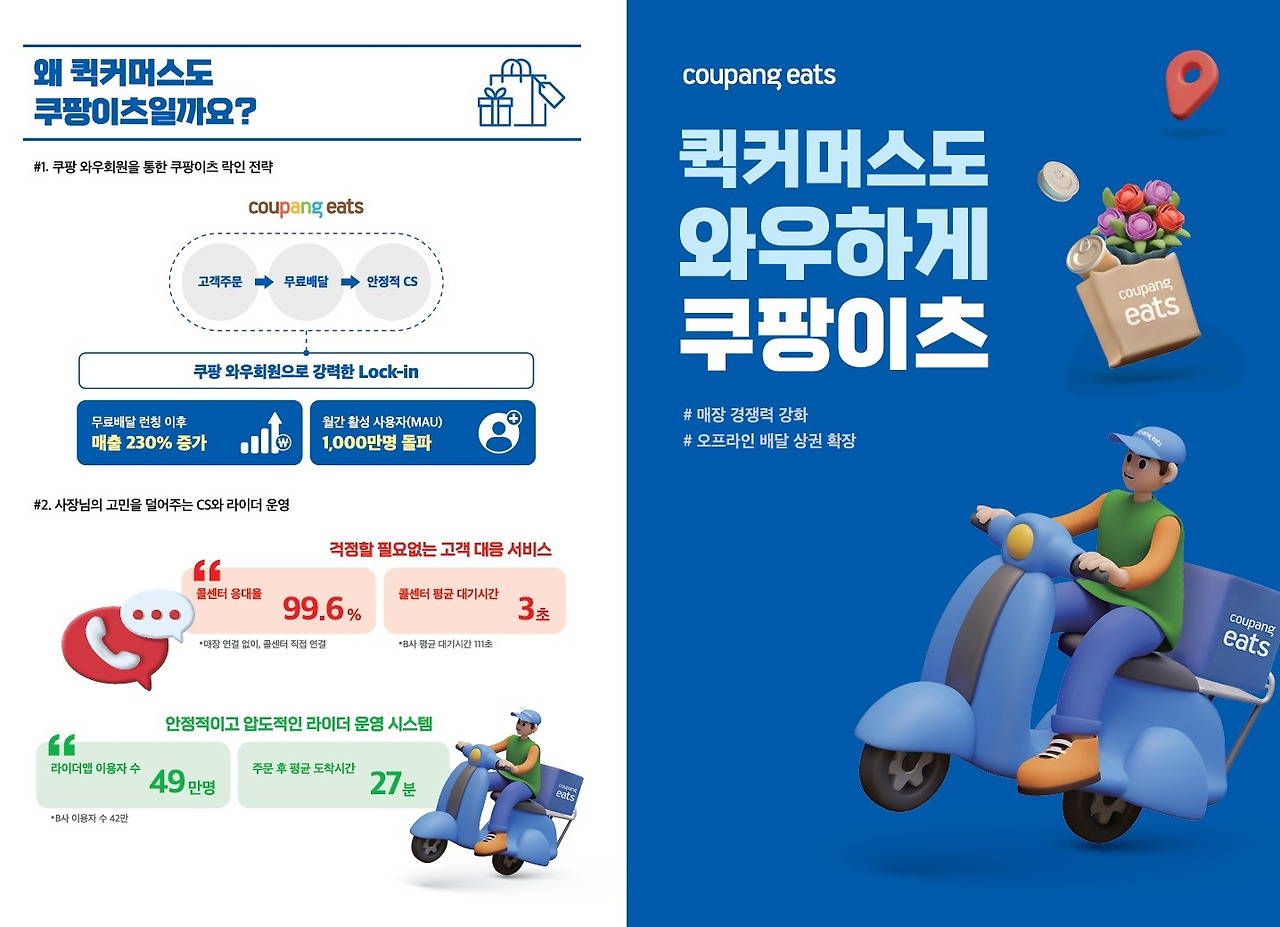 반면 쿠팡이츠 쇼핑은 이미 쿠팡 시스템을 등에 업고 있습니다.