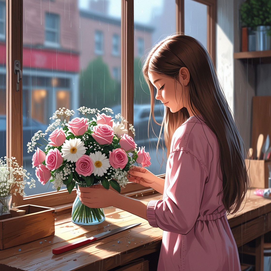 “안녕하세요… 혹시 작은 꽃다발 만들 수 있을까요?”