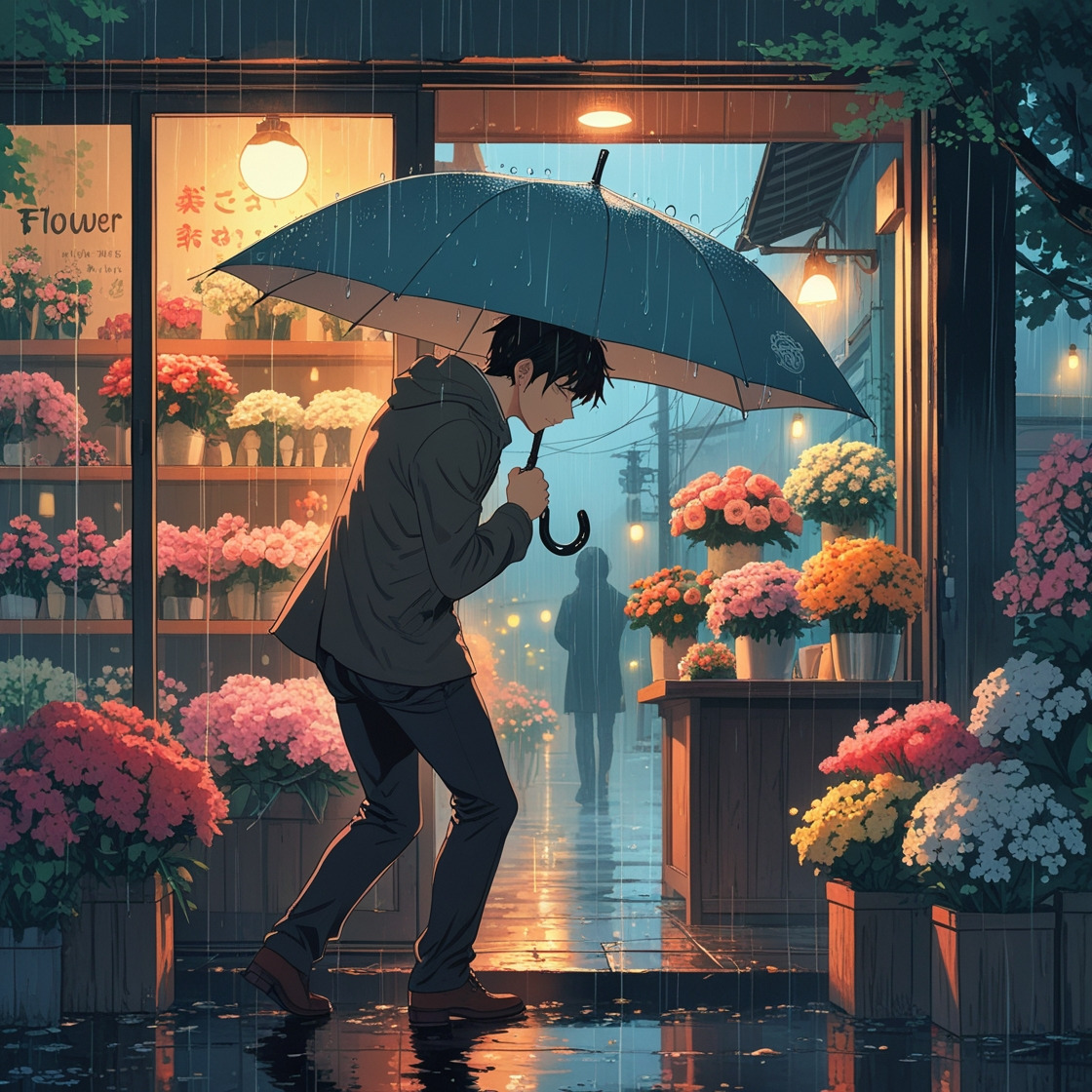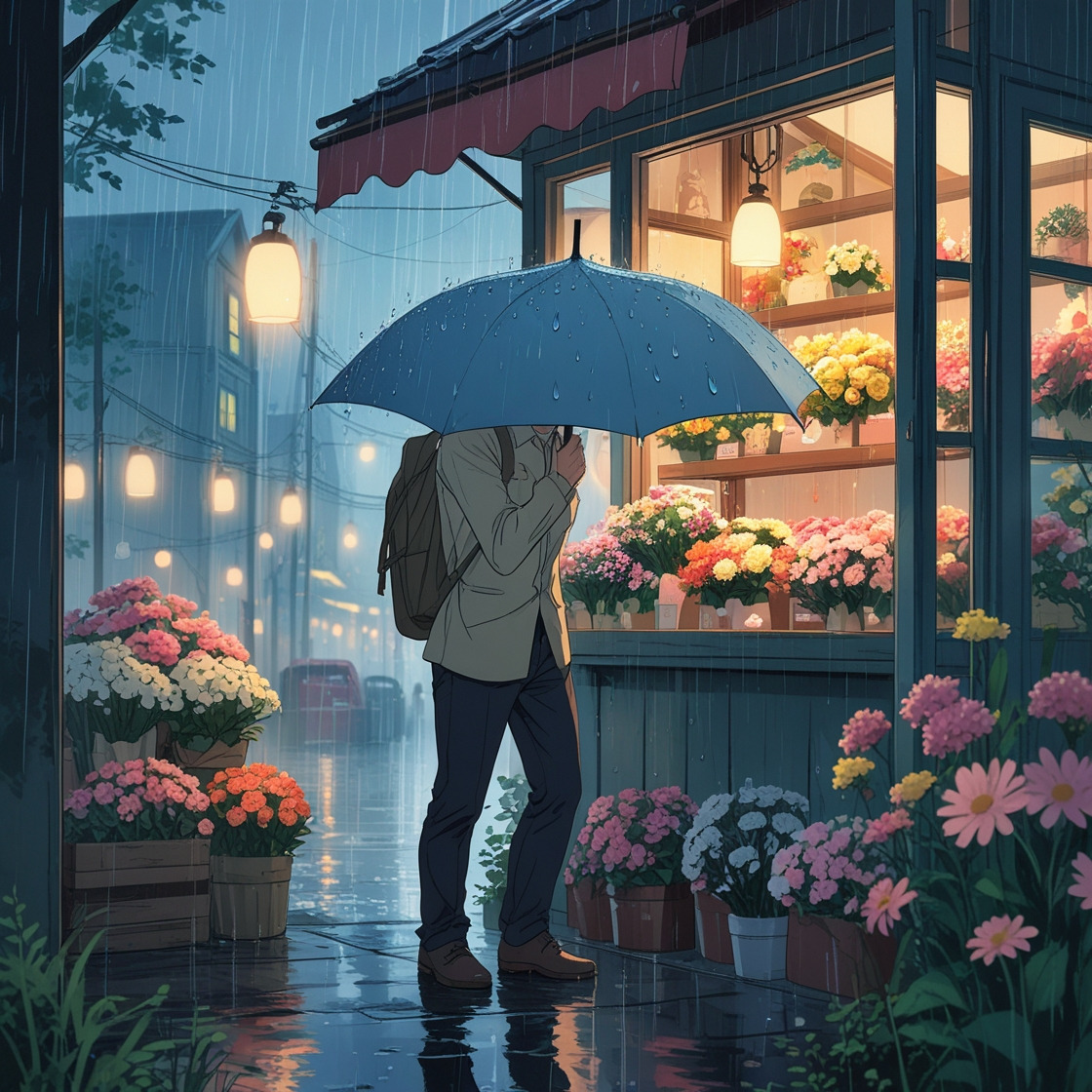 “고맙습니다. 이 빗속에도 꽃은 참 따뜻하네요.”
