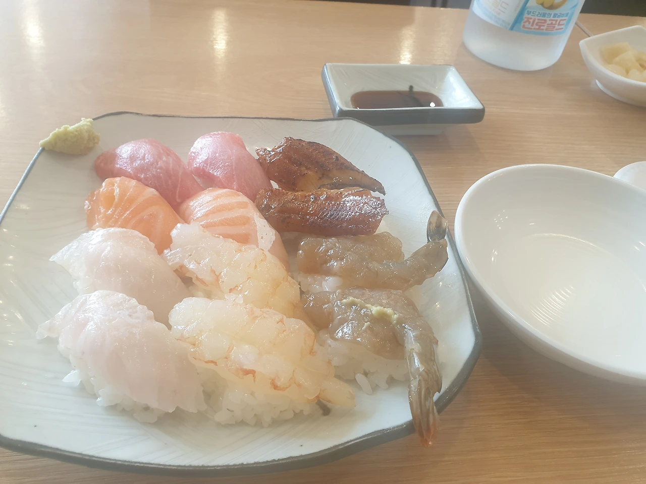 단새우, 생새우까지. 고루고루 올라간 싱싱한 초밥들은 보기만 해도 기분이 좋다. 와사비는 옆에 조심스럽게 얹혀 있고, 간장은 네모난 그릇 안에서 그들의 등장만을 기다린다. 초밥 위에 탱탱하게 올라탄 새우살을 보고 있자니, 벌써 입 안에서 감탄이 새어나온다.