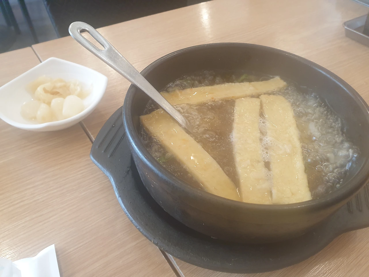 옆에 놓인 계란탕 한 숟가락을 떠넣는다. 뚝배기에서 은은히 피어오르던 김이 식도를 타고 마음까지 데워준다. 계란은 폭신했고, 국물은 짜지 않고 담백했다. 그렇게 한 입, 또 한 입. 어느새 접시는 비어가고 있었다.