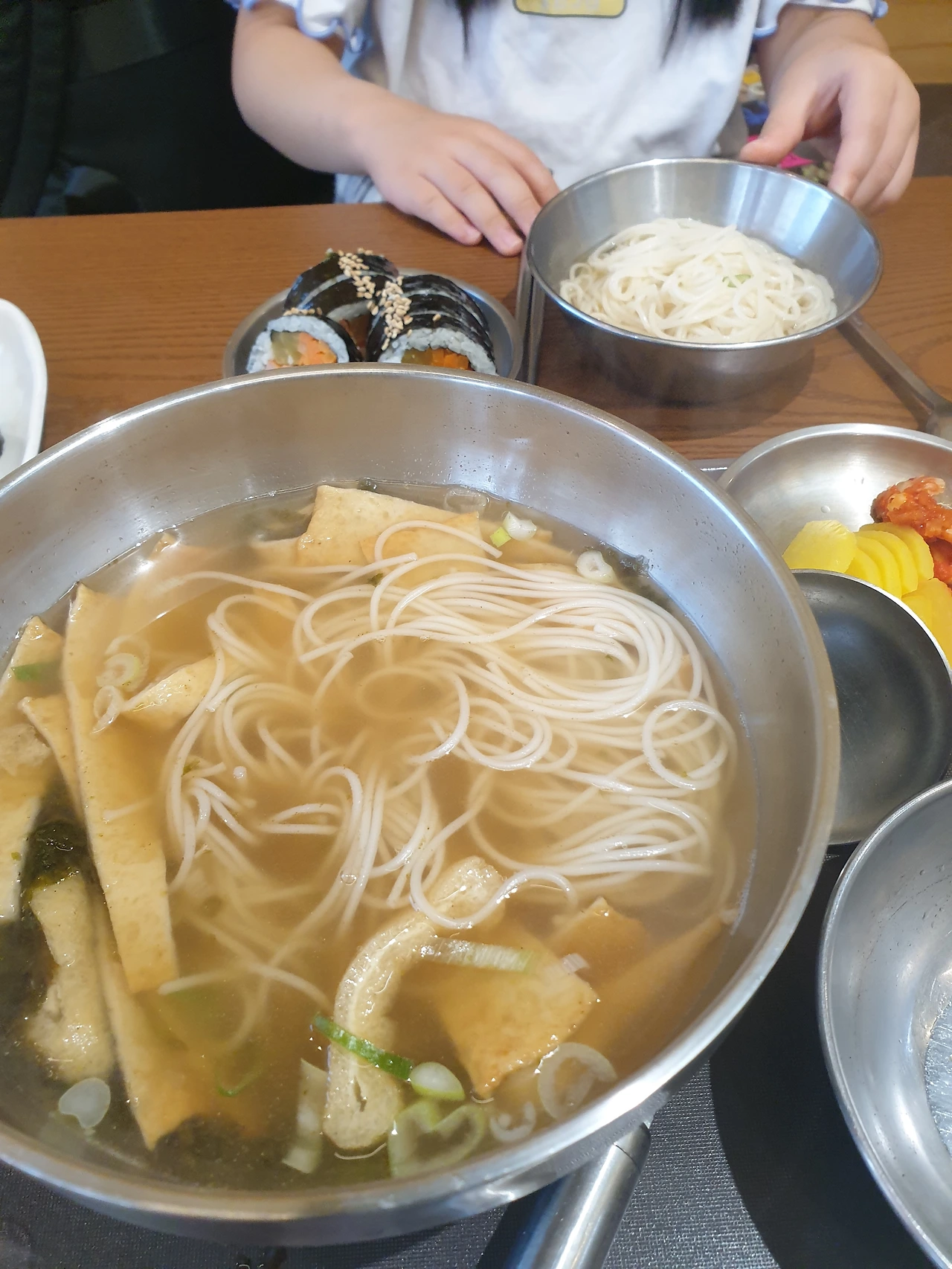 하얗고 가느다란 소면 위로 어묵 두 장,