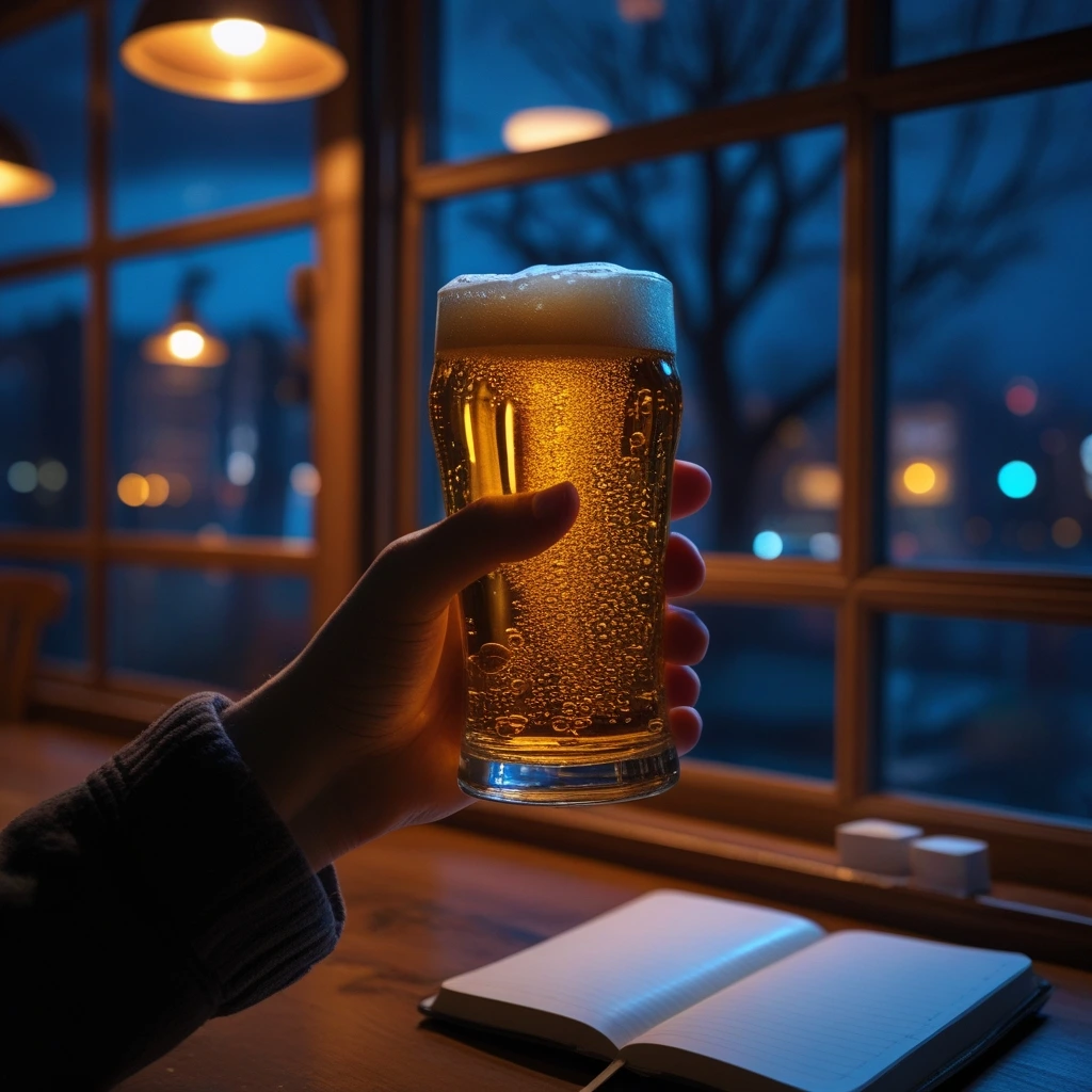 맥주 거품이 점점 사그라든다.
