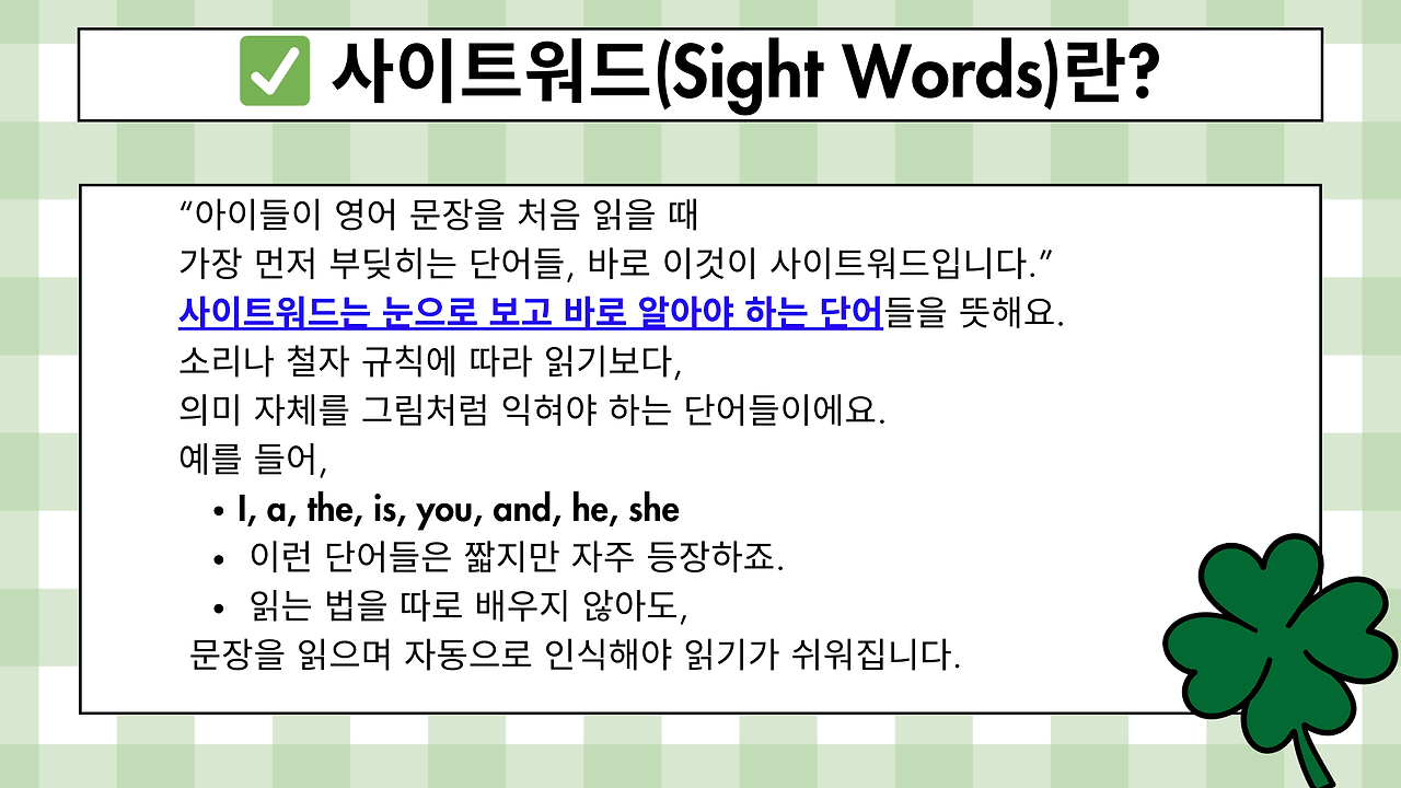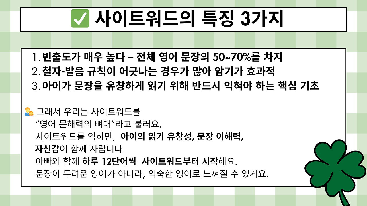 그래서 ‘사이트워드’는 영어 읽기의 뼈대,