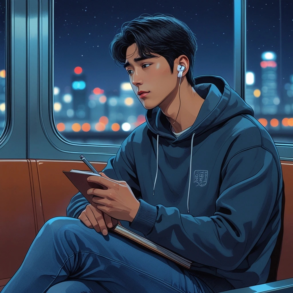창밖의 불빛은 빠르게 스쳐 지나가고,
