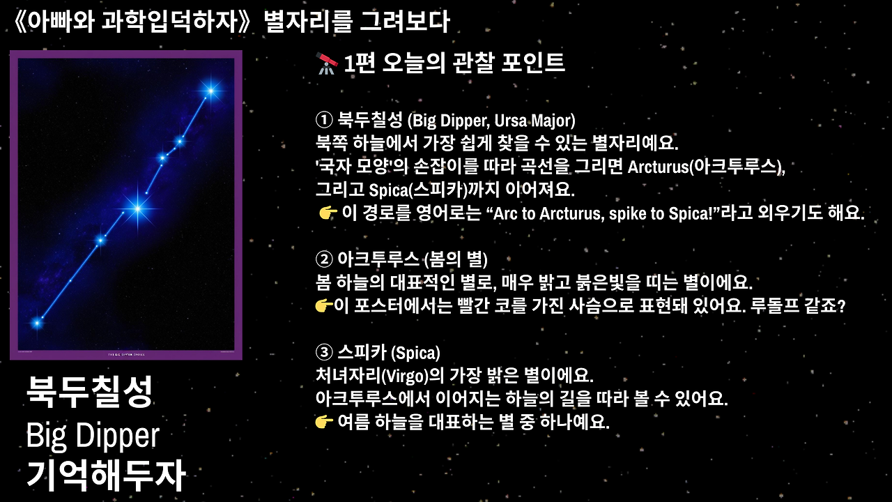 “이건 북두칠성인데, 국자처럼 생겼지?”