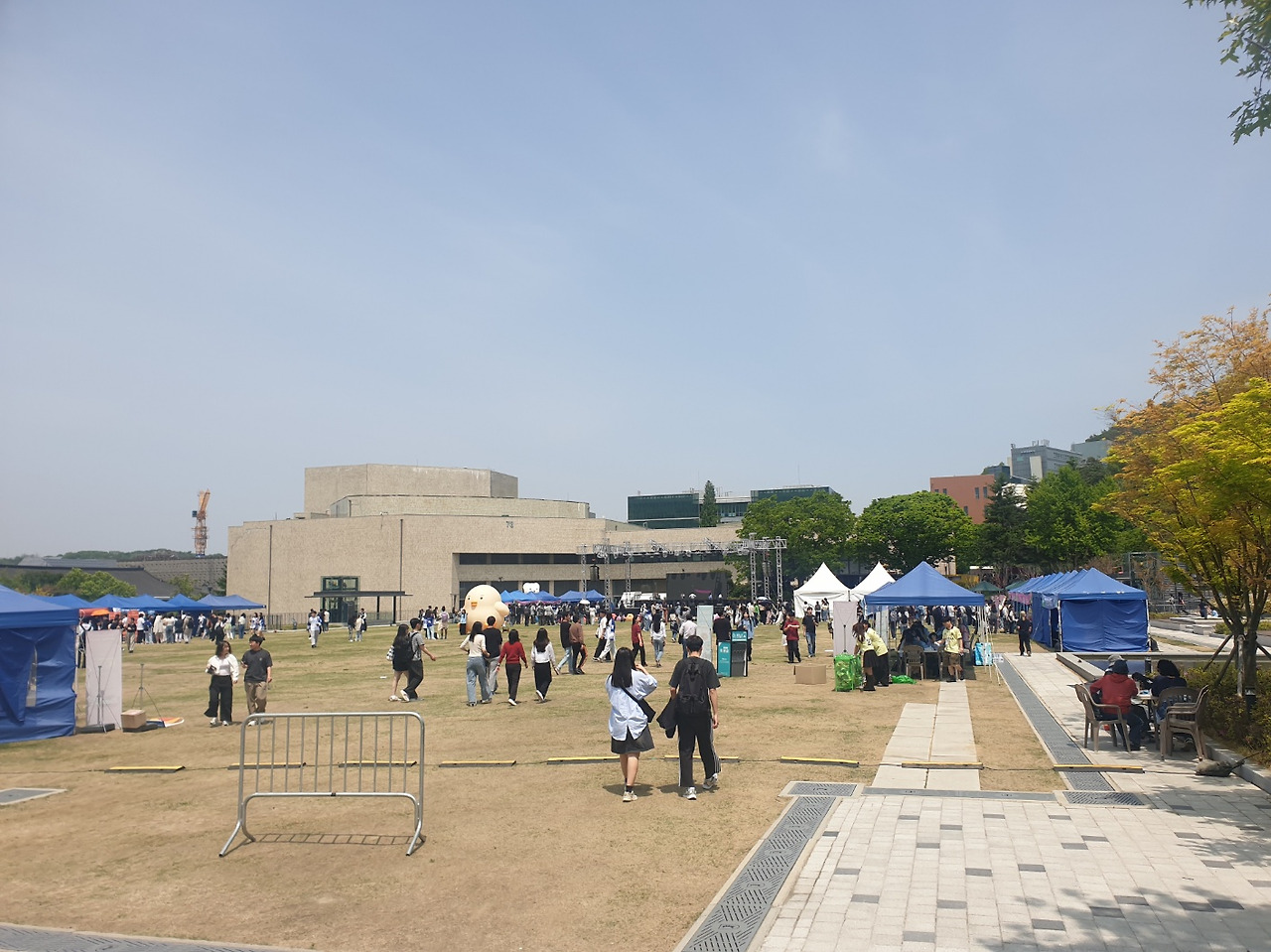 대강당 앞 잔디밭엔 천막이 세워지고,