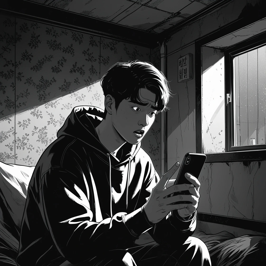 “그 방, 벽지에 곰팡이 자국 있지?”