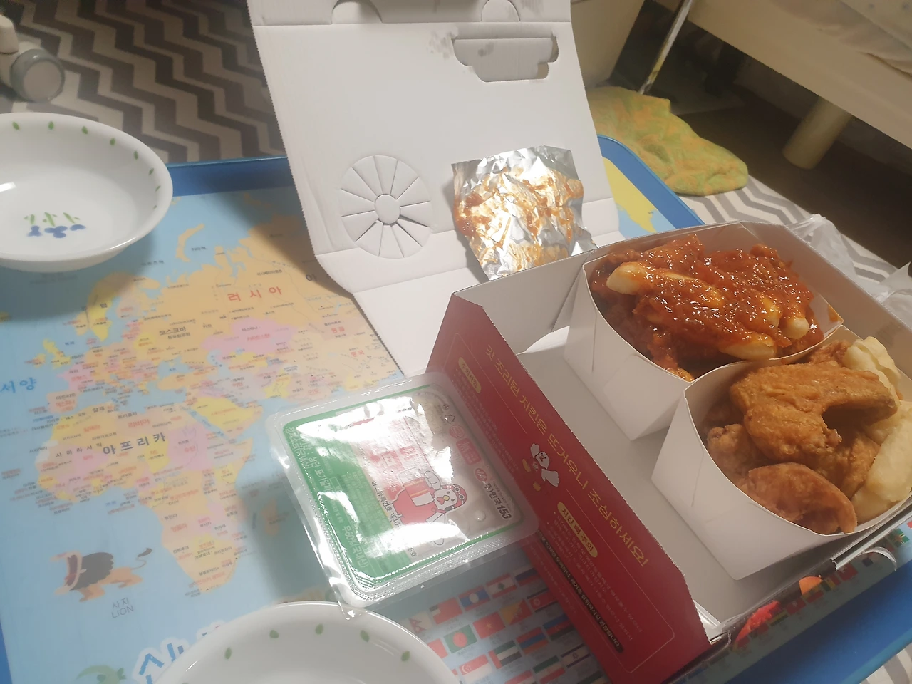 지도 위에서 먹는 치킨.