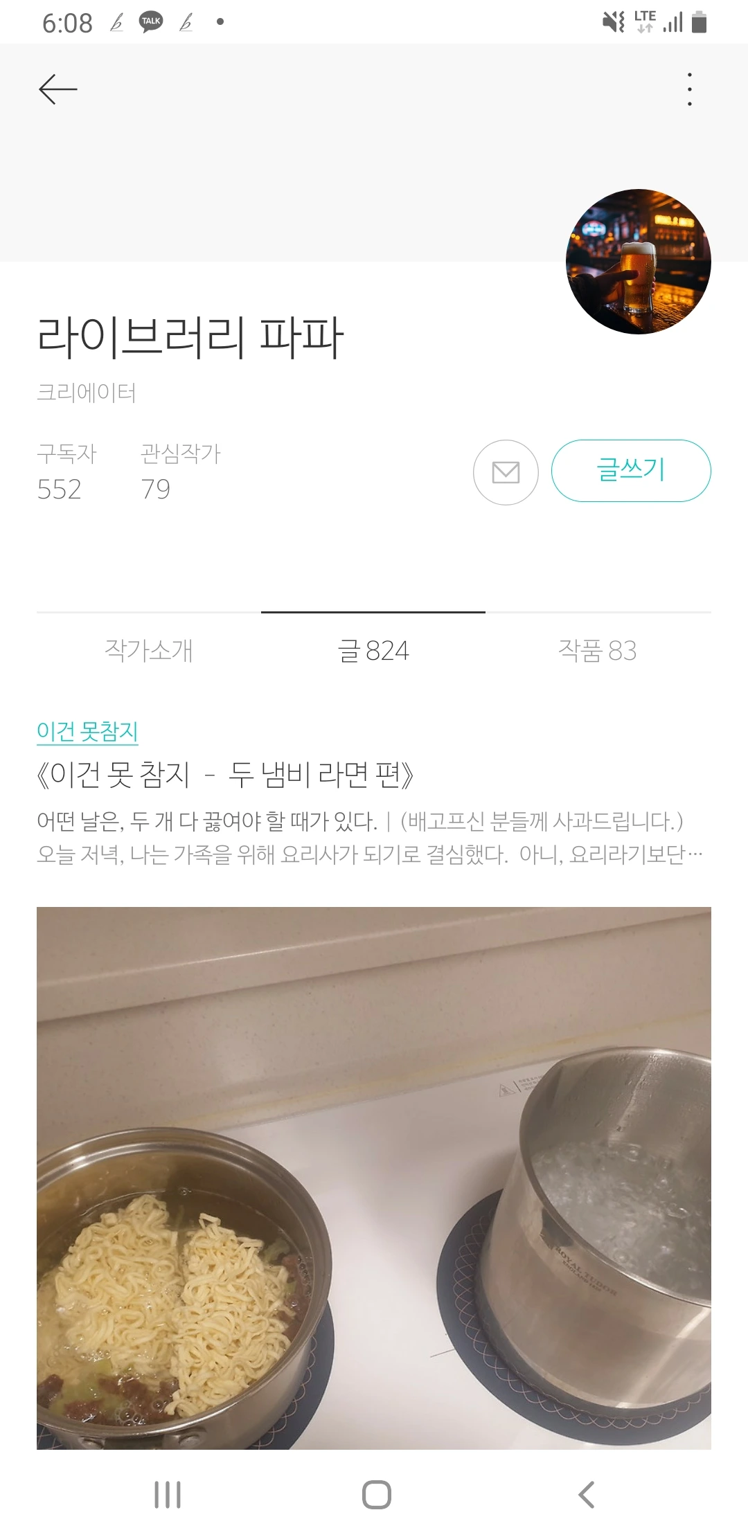 (오늘 글 제목: 라면 끓이다 울컥한 사람)