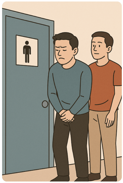 화장실이 급해져서 줄을 섰어.