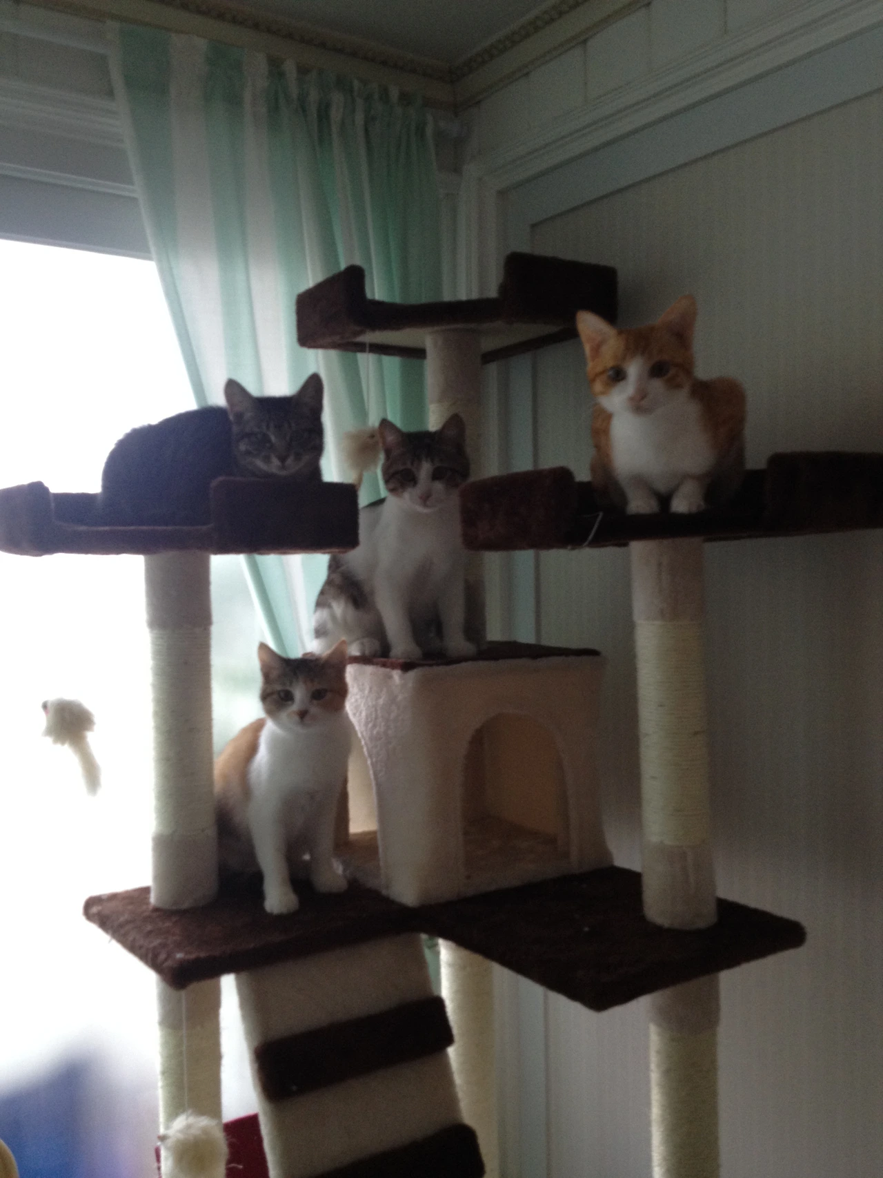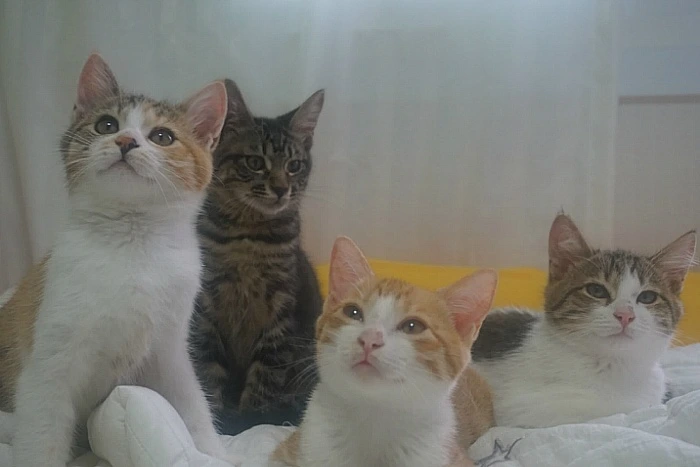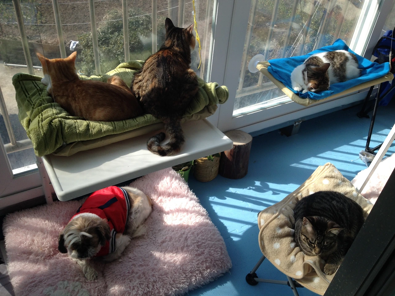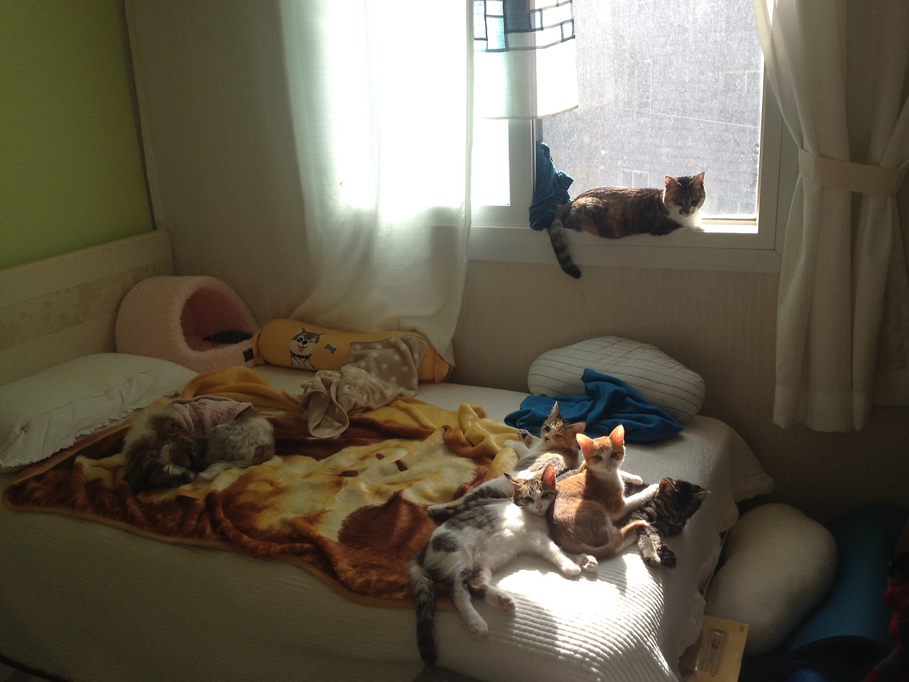 작은 방에 따로 격리하여 방석도 만들어주고 작은 캣타워도 마련해 주고 아이들이 편안하게 적응할수 있게 해주었다.