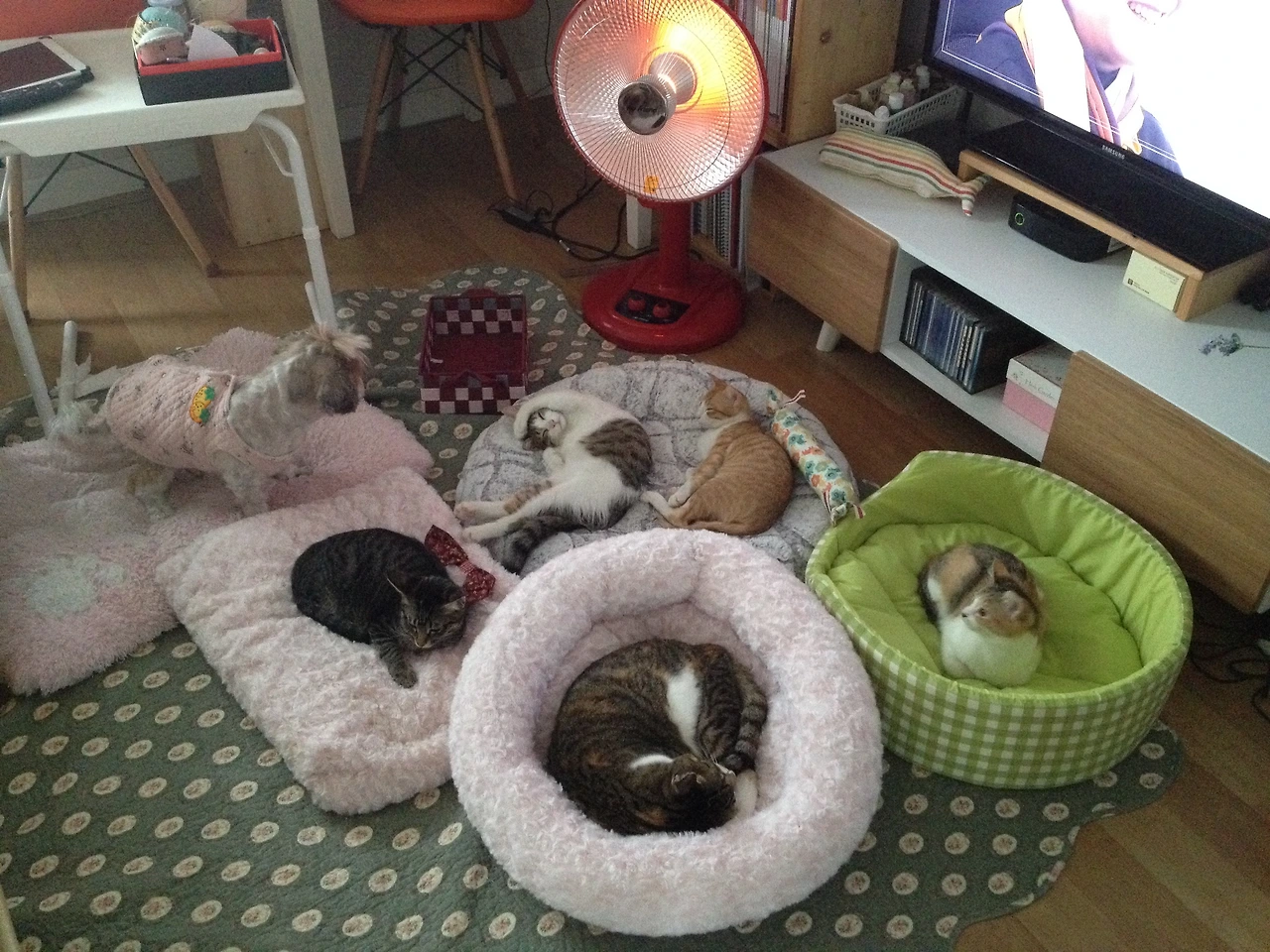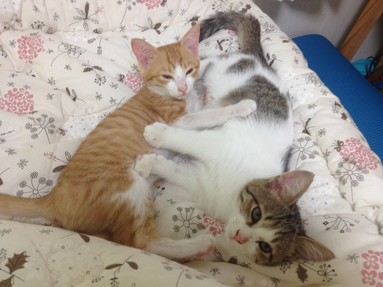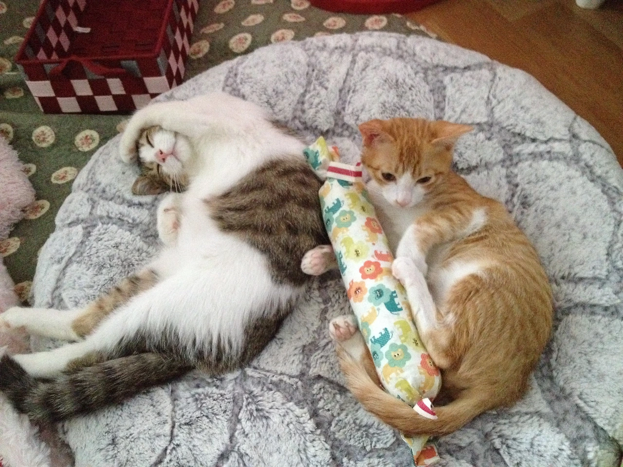 작은 방에 따로 격리하여 방석도 만들어주고 작은 캣타워도 마련해 주고 아이들이 편안하게 적응할수 있게 해주었다.