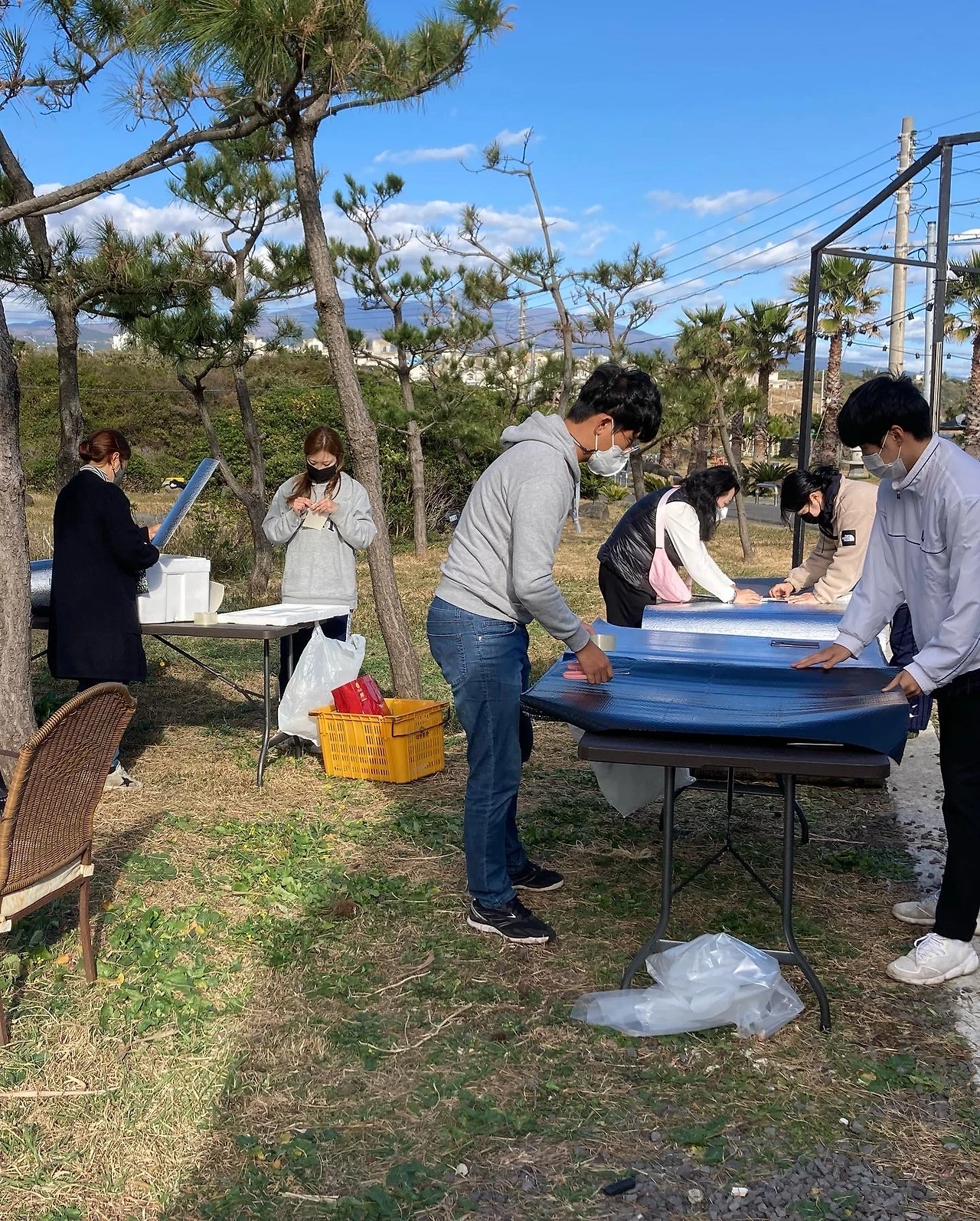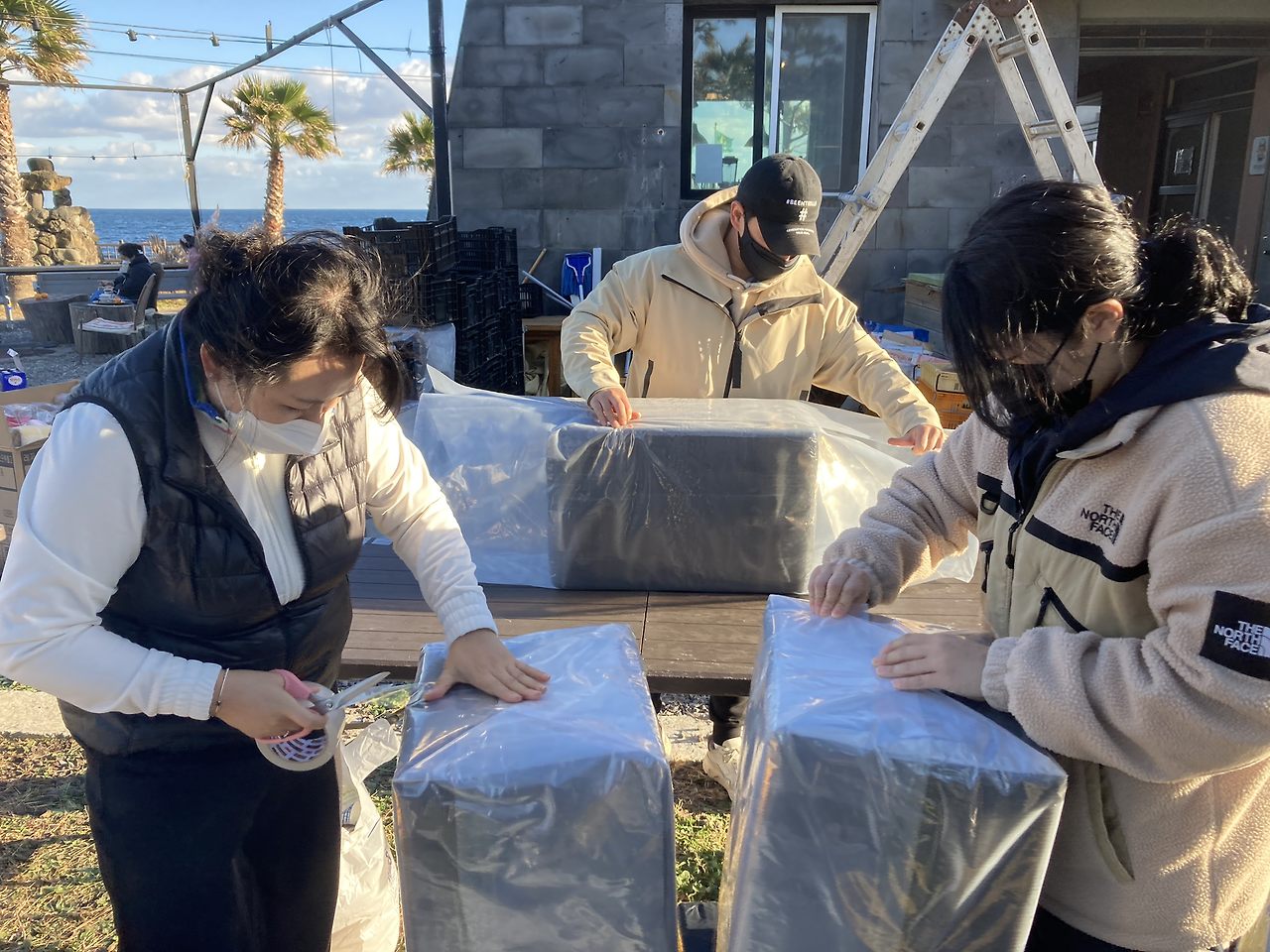 제멍냥이라는 봉사단체가 와서 한꺼번에 3시간만에 20개의 겨울집을 만들어 주었고 암투병 중인 동네분들이 오셔서 같이 만들어주어 거의 121개의 길고양이 겨울집을 만들게 되었다.