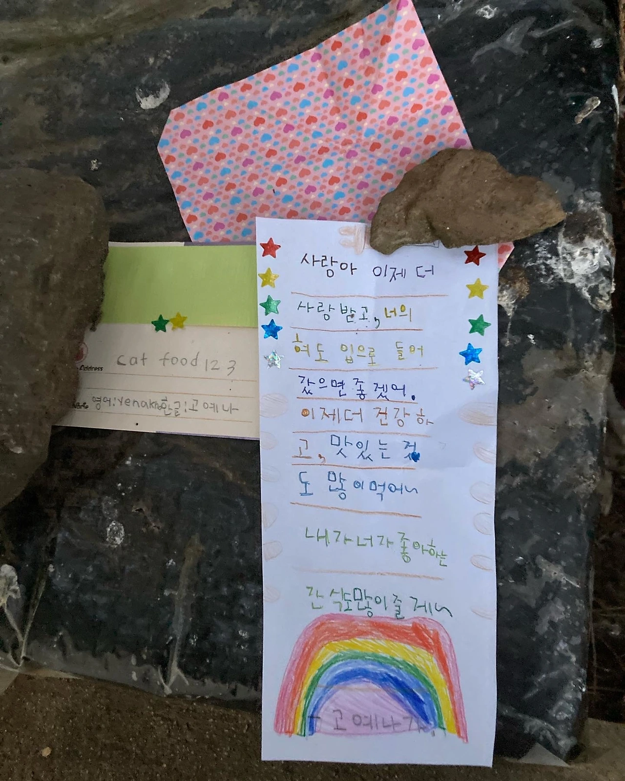 꺼내서 읽어보니 야옹이에게 보내는 작은 소녀의 글씨가 마음을 뭉클하게 했다.