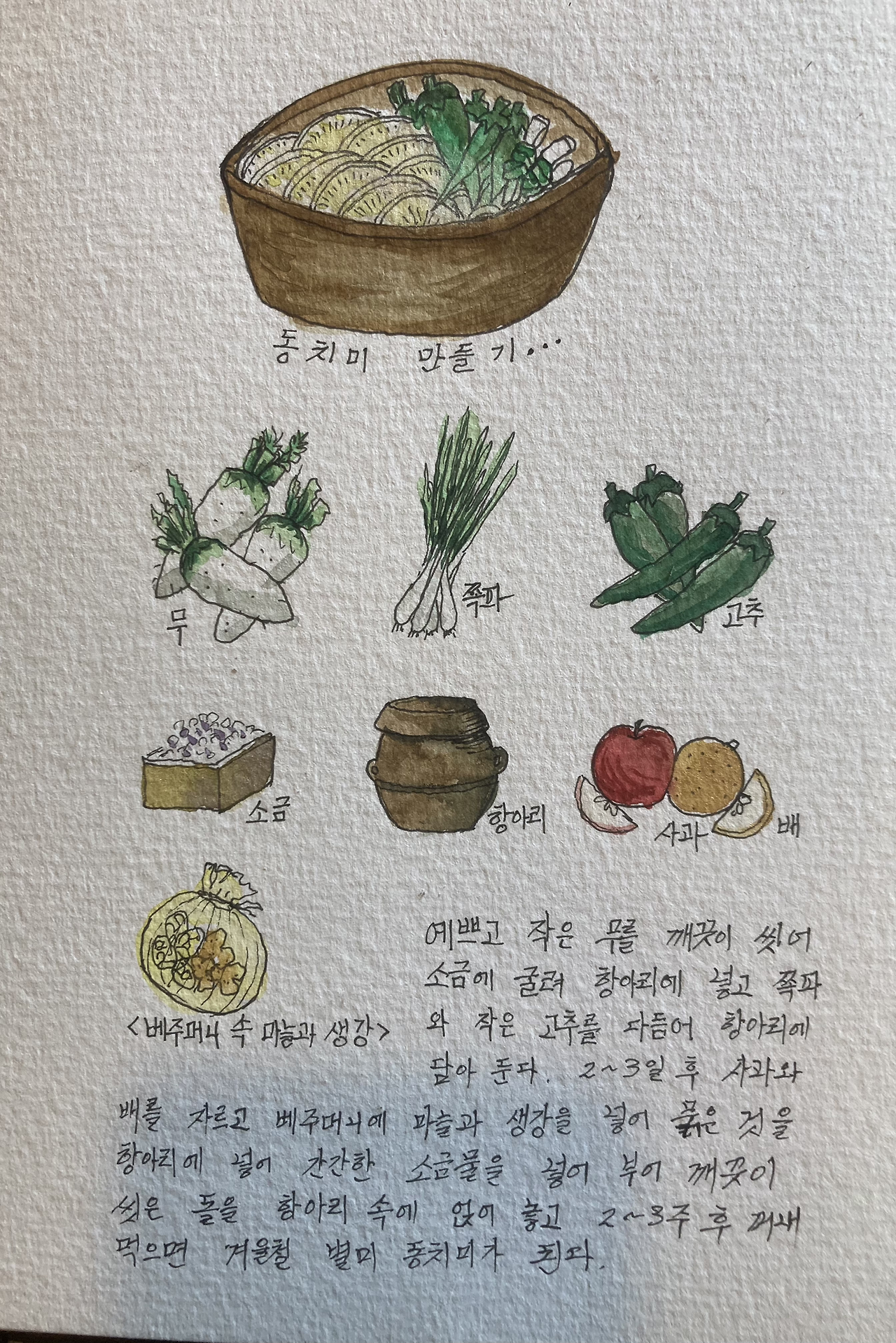 잘 삭힌 무와 고추, 실파의 조화는 사과와 배의 맛도 같이 깃들어져 환상의 겨울 맛이 된다