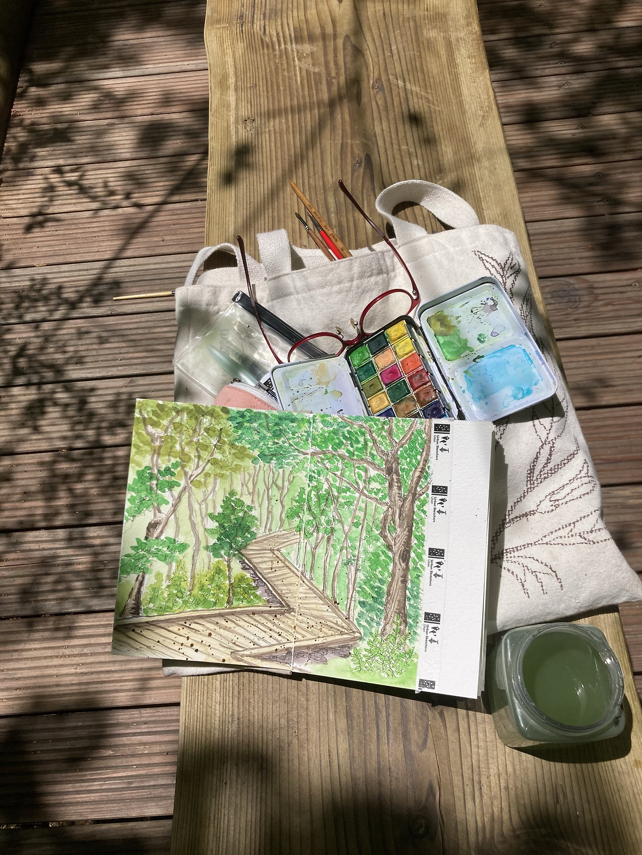 내 가방에는 항상 내가 만든 수제드로잉북과 고체물감, 붓과 필통, 물감이 항상 있다.