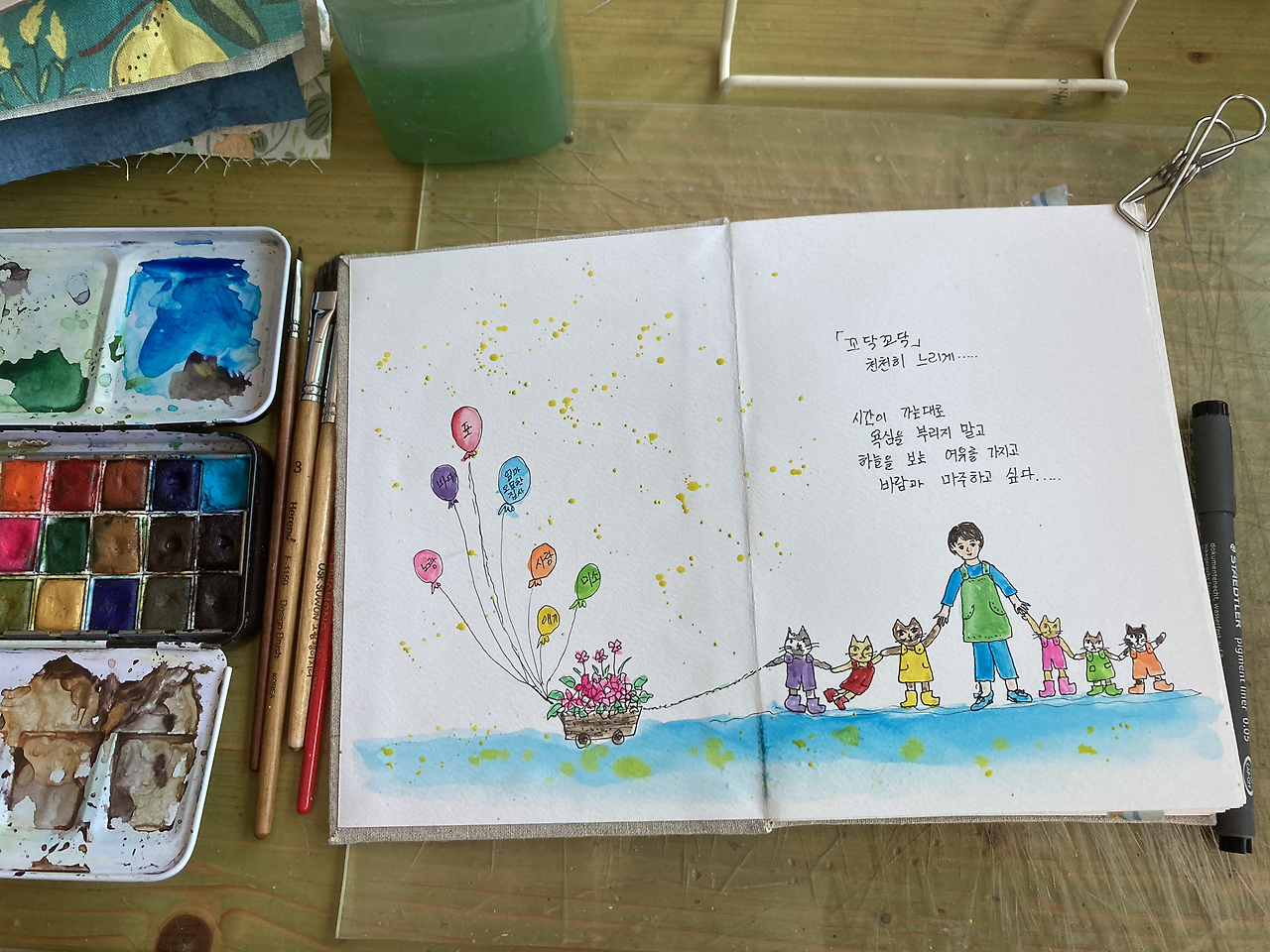 제주에 와서 고양이와 그림으로 사람들이 이어지고 지인들이 많이 생겼다.