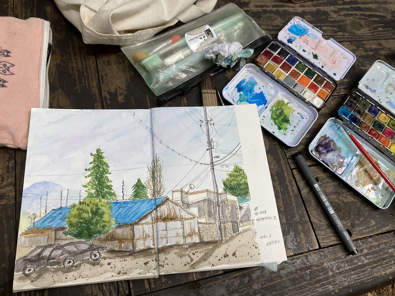 현장을 바로 보고 기록하듯이 그리는 것을 어반스케치라고 한다.