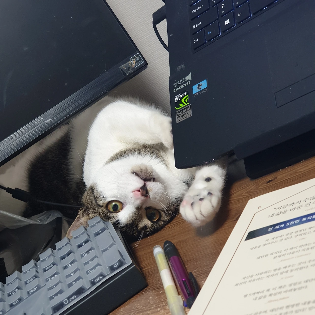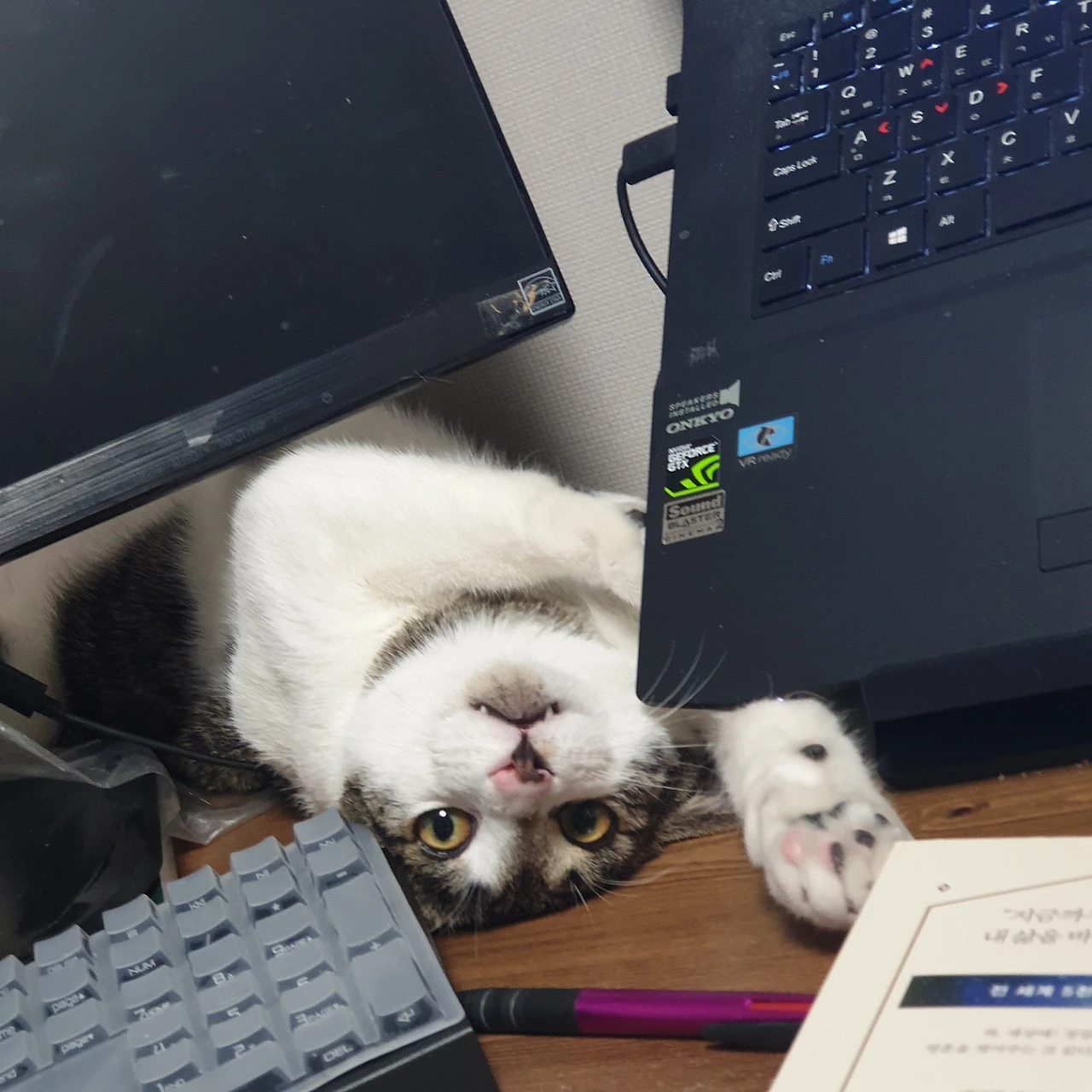 눈치도 빠르고, 말도 제법 알아듣지만 여전히 아기아기한 녀석이다. 양쪽으로 보이는 쌀알같은 송곳니는 덩치가 커졌어도 귀여움의 포인트! 오래의 특기는 책상 위에 올라가서 마우스나 볼펜 떨어뜨리기. 아주 짧은 시간 가지고 놀다가 사라지기 등이다.