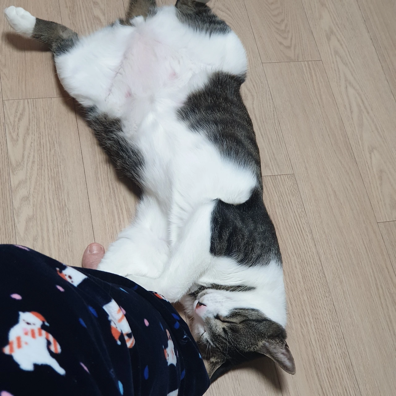 큰 집사 발을 가지고 뒹굴뒹굴하는 녀석. 쿰쿰한 발 향기(!)까지 사랑하는 녀석이다.