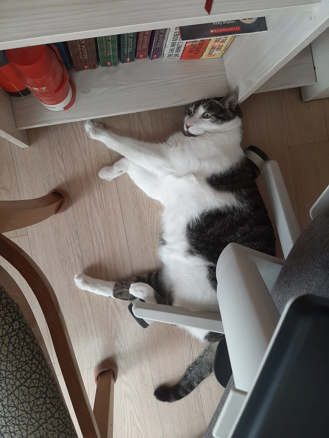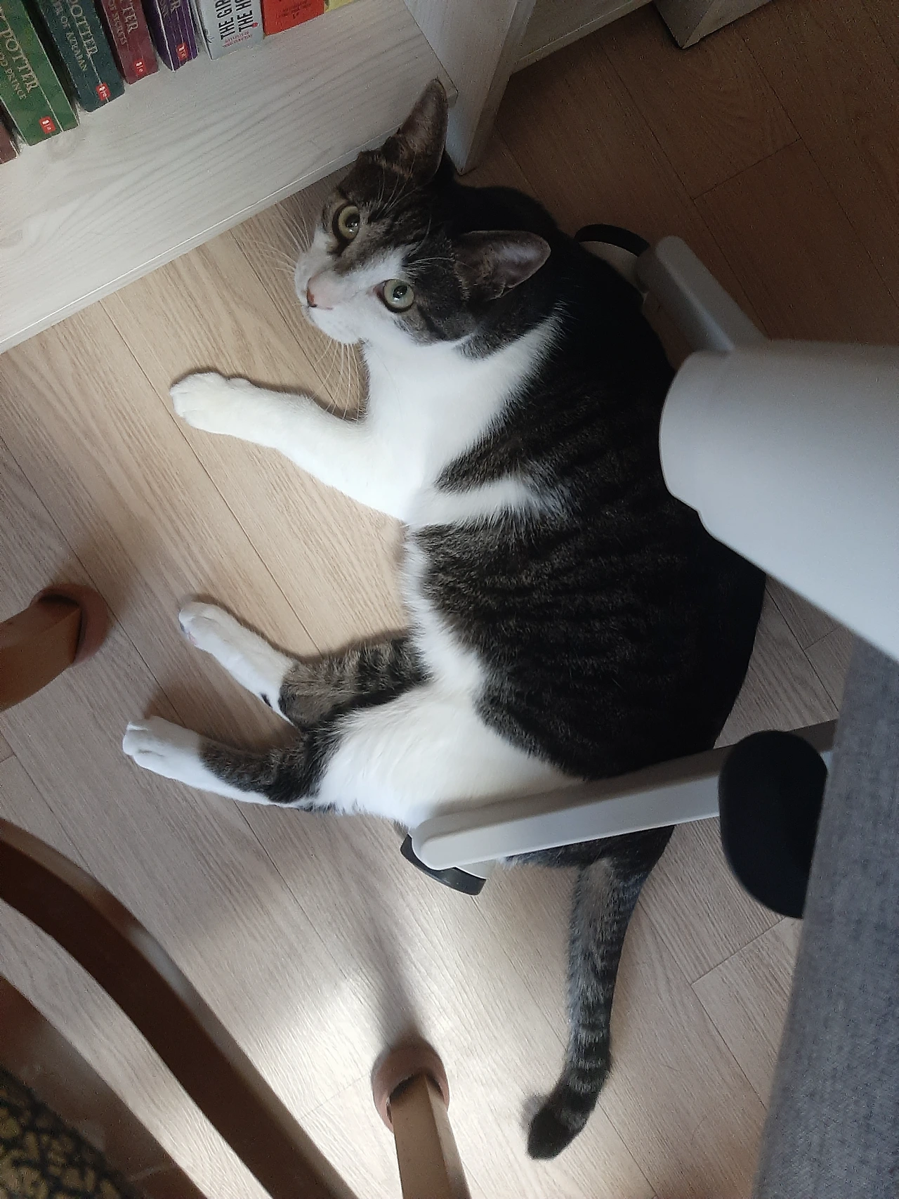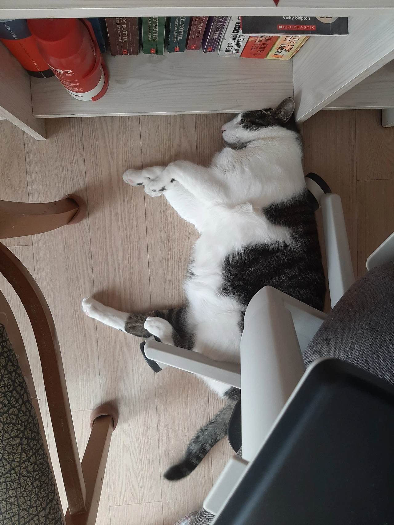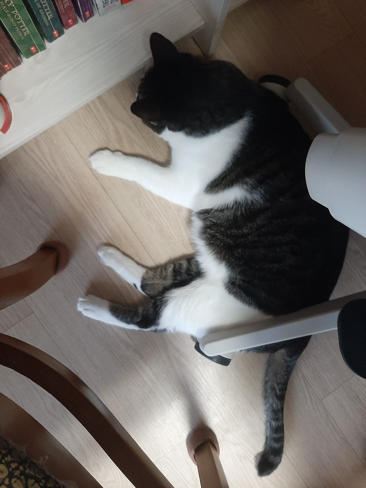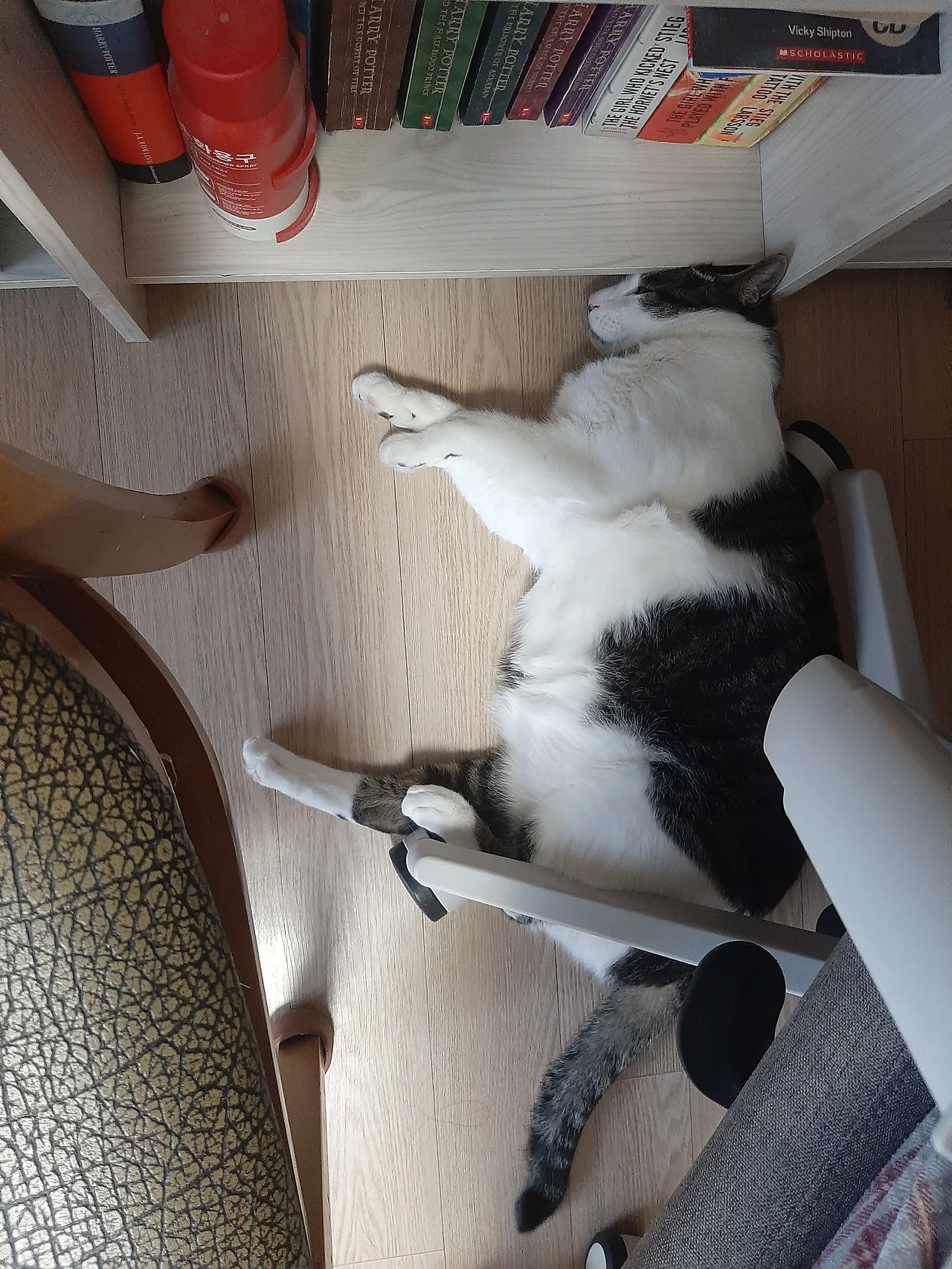 나는 집에 있는 시간의 대부분을 책상 의자에 앉아서 보낸다.