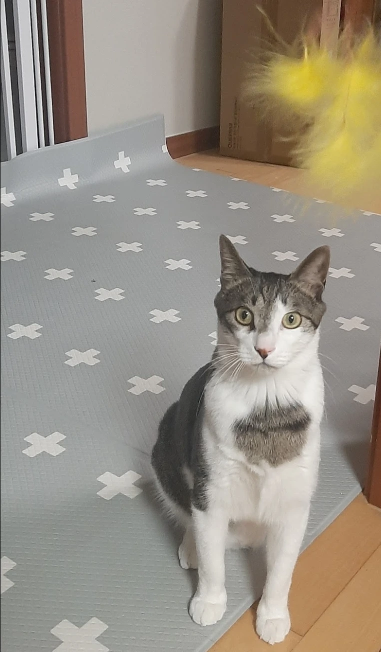 몇 주 전에는 큰 집사가 오래의 '먹이 장난감'을 새로 장만해 주었다. 한참을 어색해하기에 큰 집사는 반복해서 사용법을 보여주고 방에서 할 일을 하고 있었다. 거실에서는 오래가 열심히 달그닥거리며 먹이 장난감을 가지고 놀더니 큰 집사 방에 가서 냥냥거리기 시작한다.