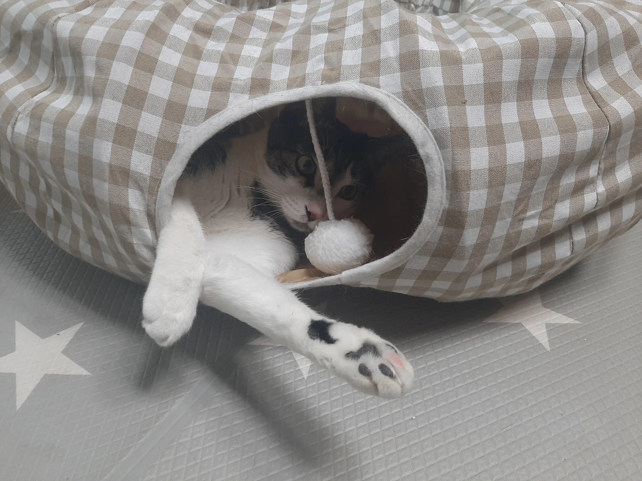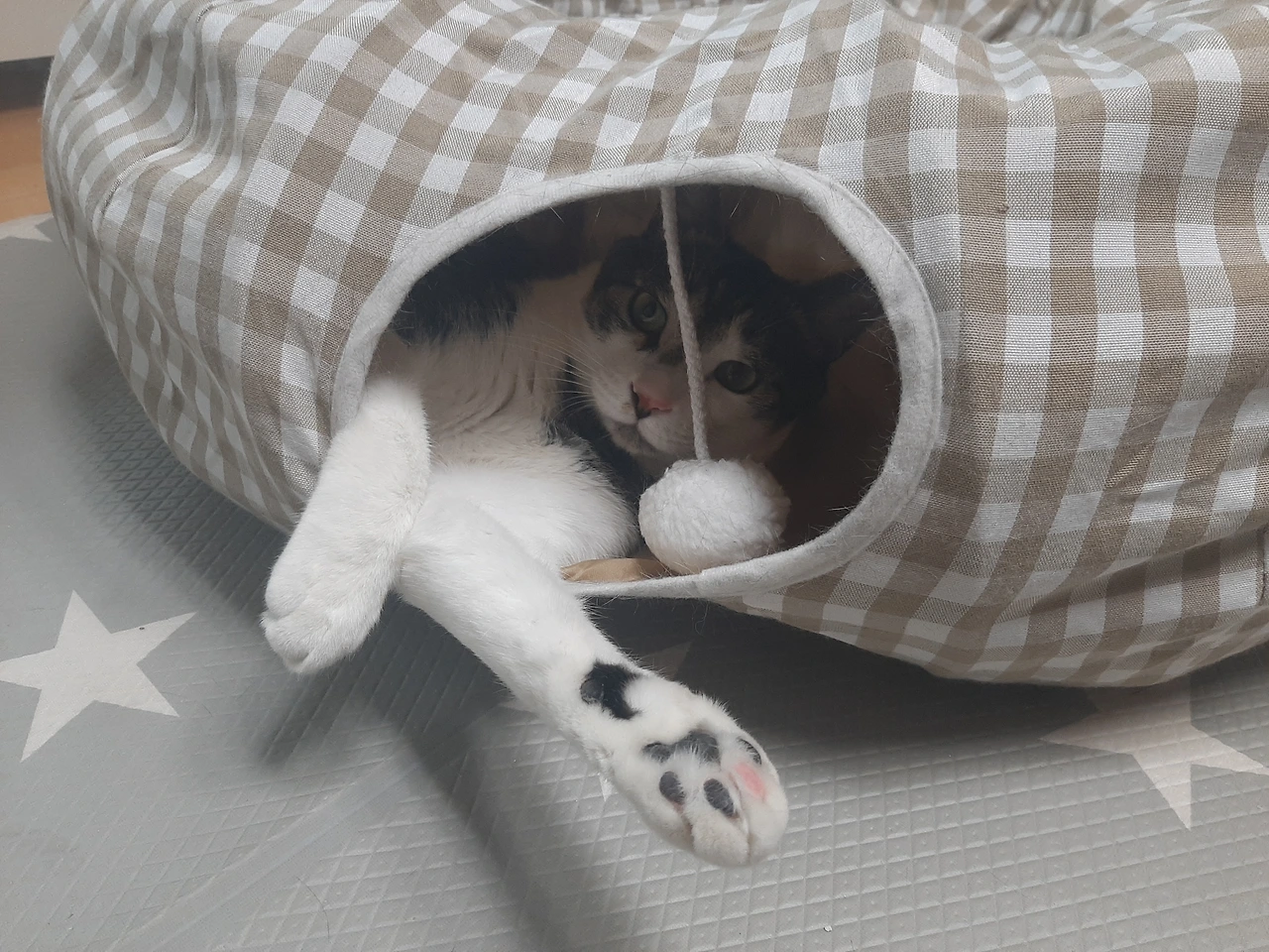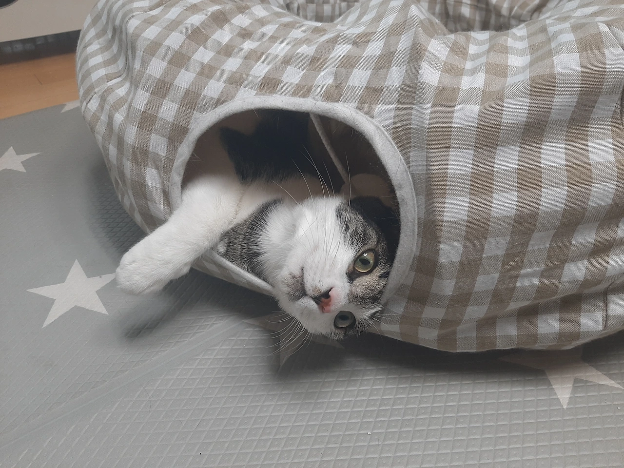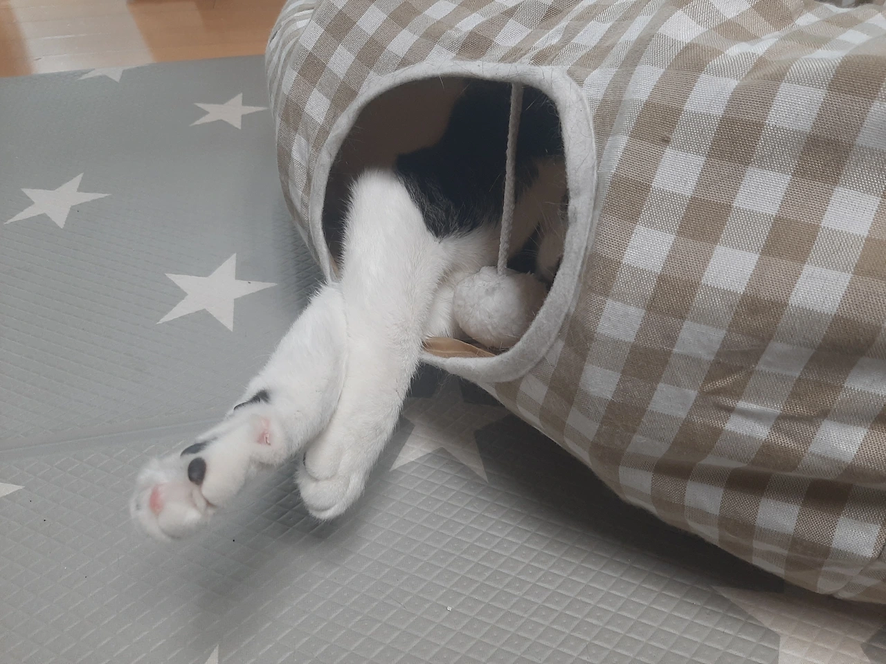 터널 안에서 고개만 쑥 내밀고 집사들의 동태를 살핀 후 다시 터널 안으로 사라지는 오래의 모습은 애니메이션에서 볼 법한 치즈 벌레를 연상케 한다. 물론 그 치즈벌레는 몹시도 귀여운 얼굴을 하는, 단지 치즈를 탐하는 녀석으로 묘사될테다.