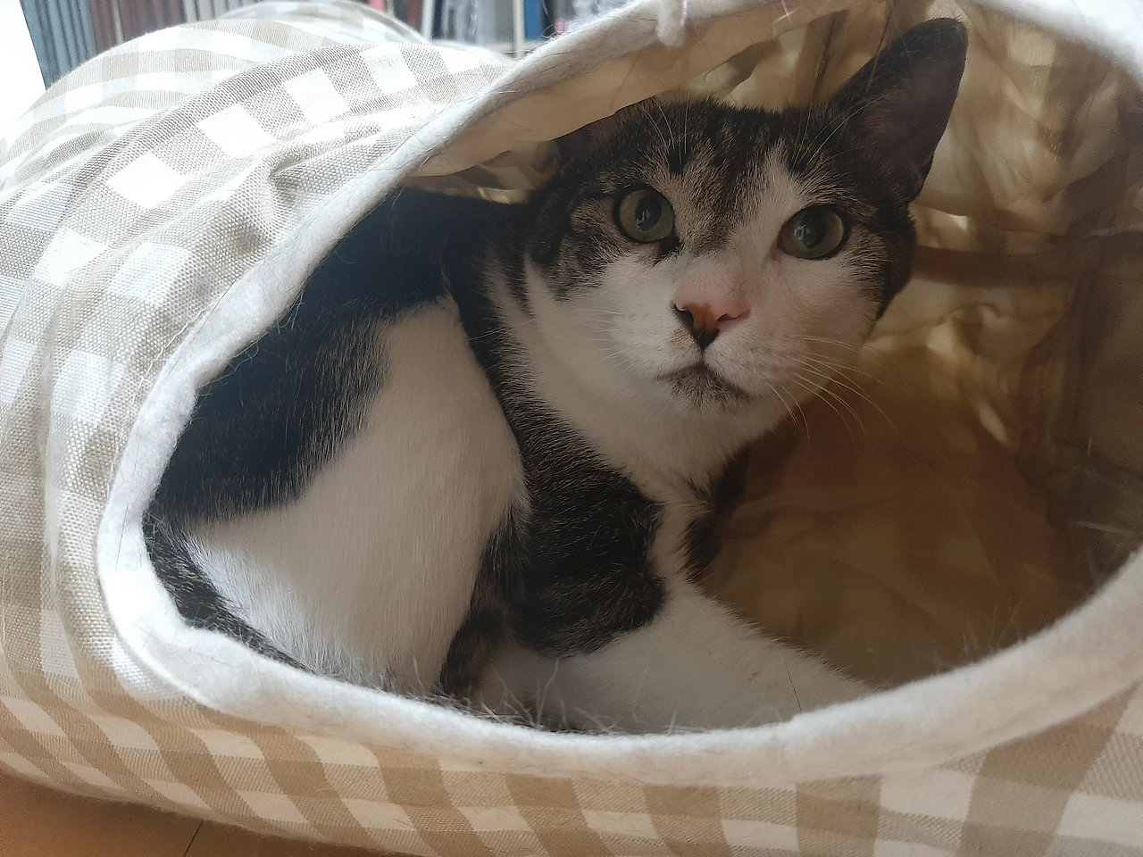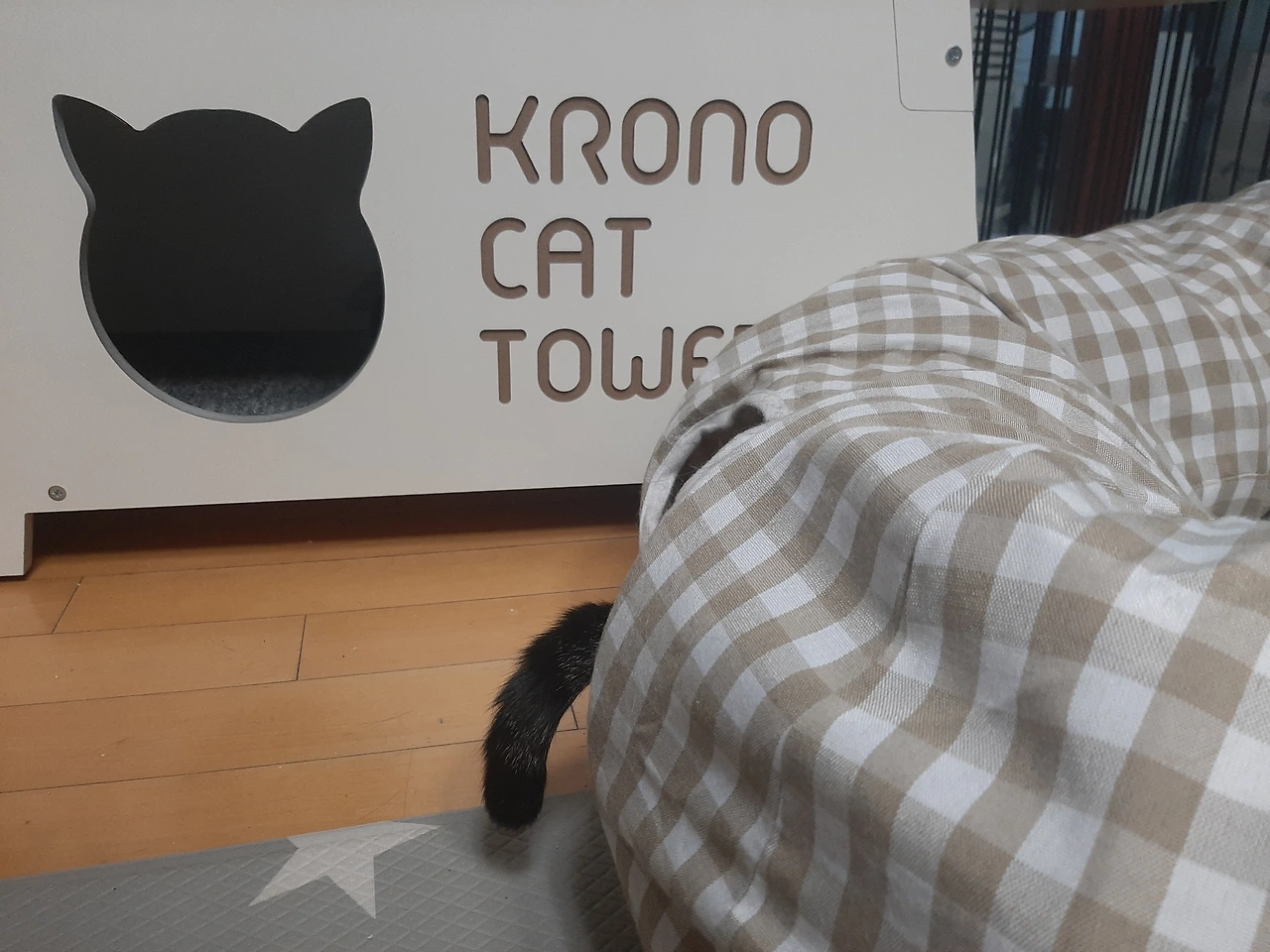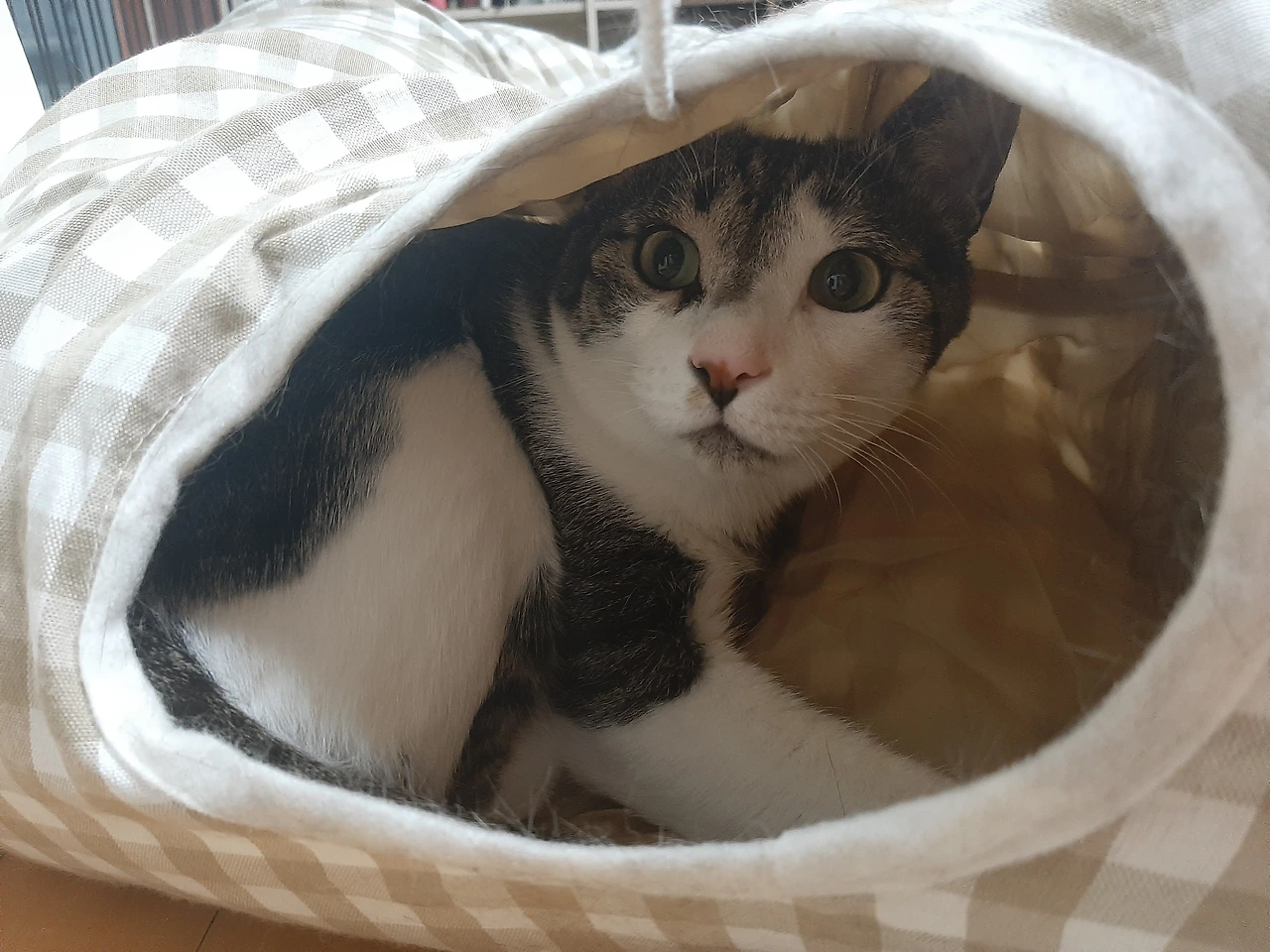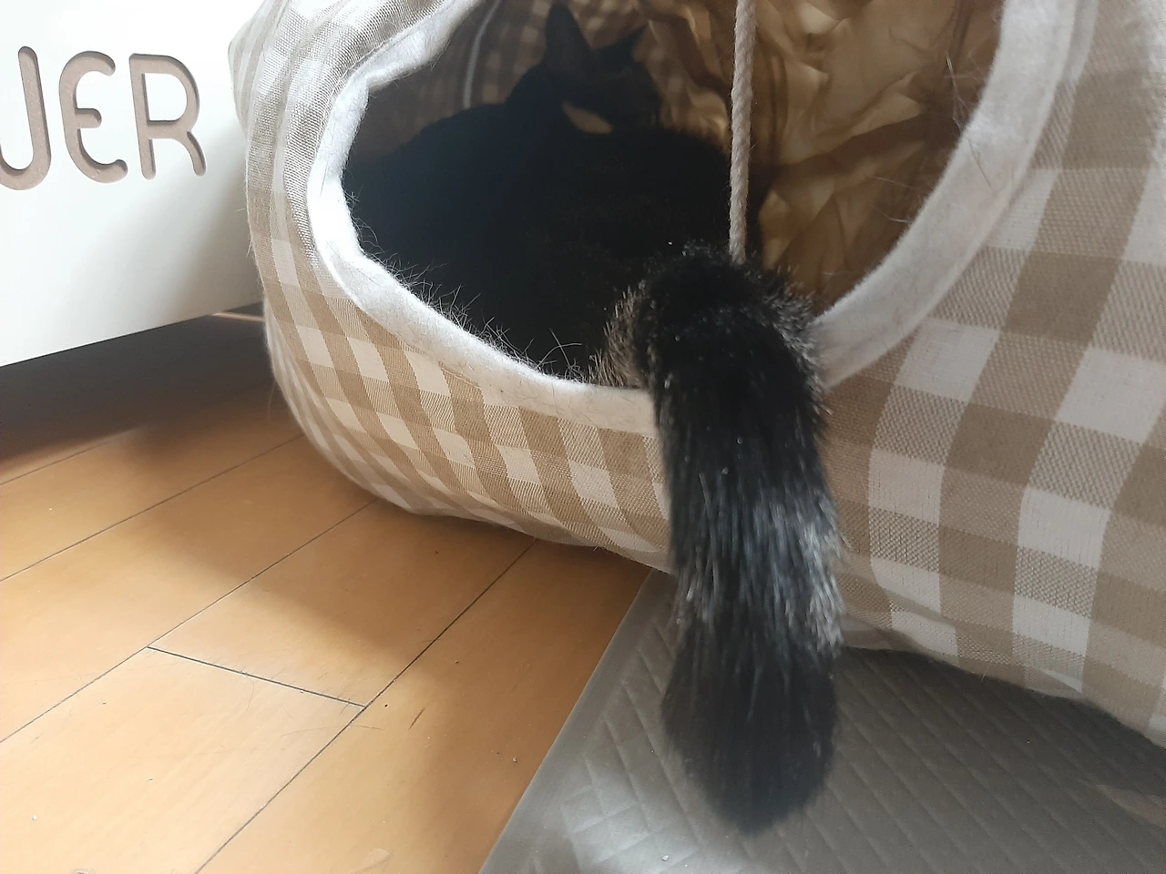거실을 오가다 캣터널에 익숙한 모양이 삐죽이 튀어나온 것을 발견했다.