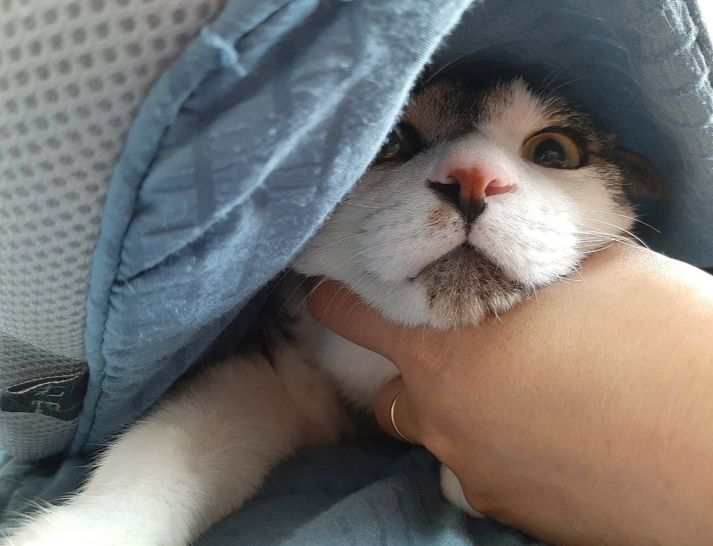 엄지와 검지로 양 쪽 턱을 긁어주니 은근히 머리 무게를 나의 손에 떠밀고 있는 영특(?)한 고양이의 모습이다.