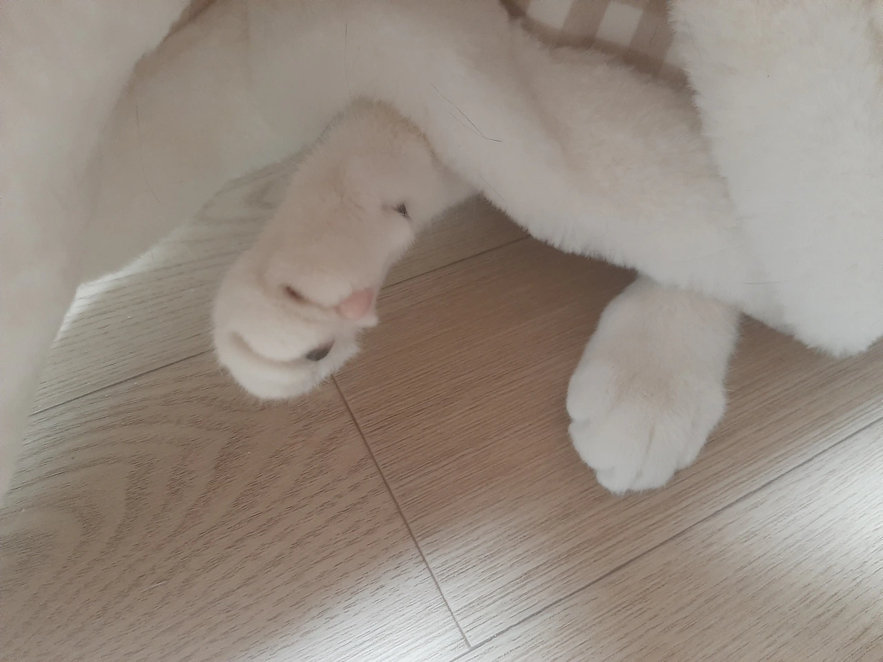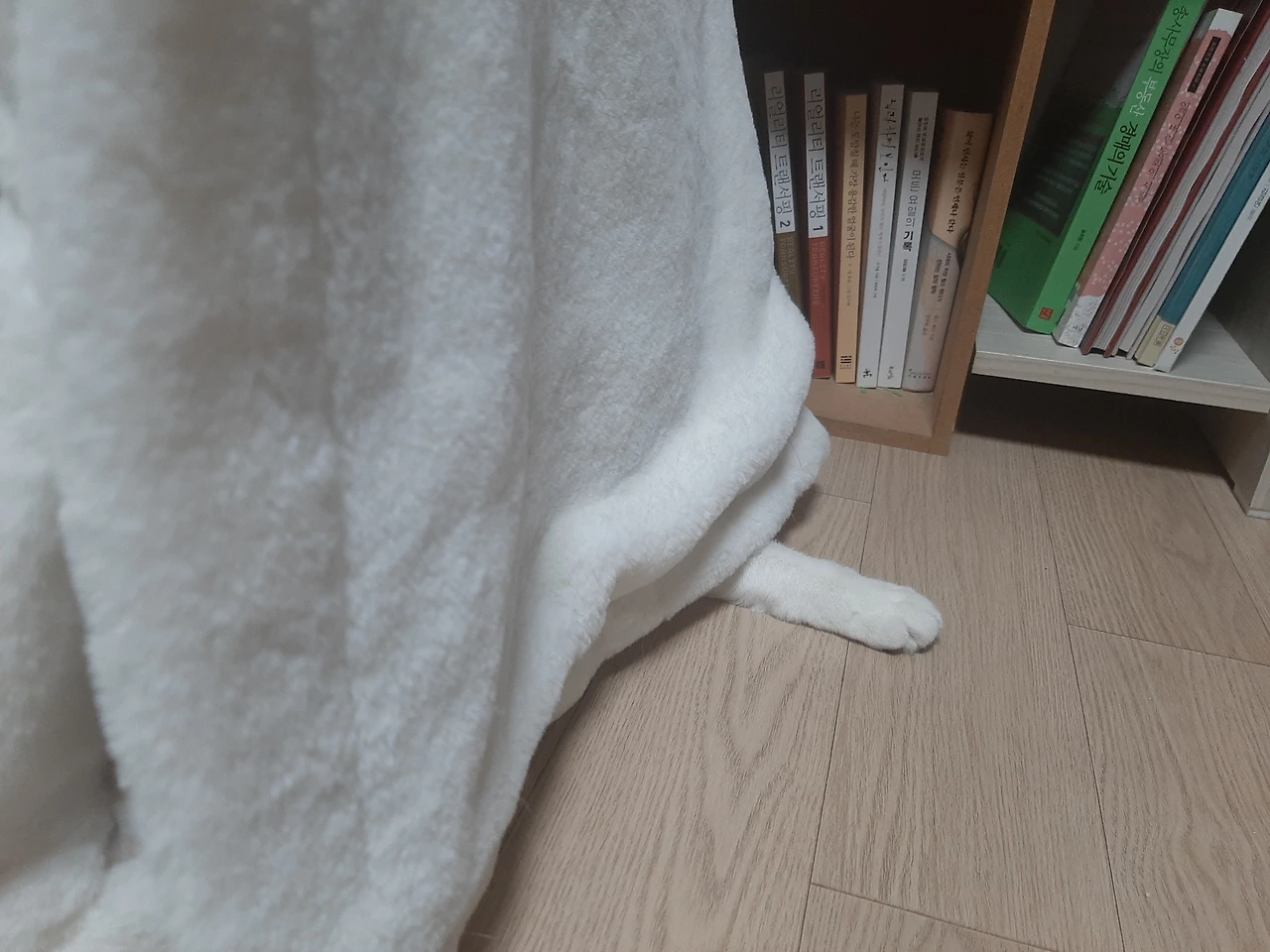 담요 사이로 쭉 뻗은 앞발을 쓰담쓰담해주었더니 그것이 못마땅하셨는지 냥냥펀치를 날리시는 주인님. 하찮아서 더욱 소중한 솜방망이.