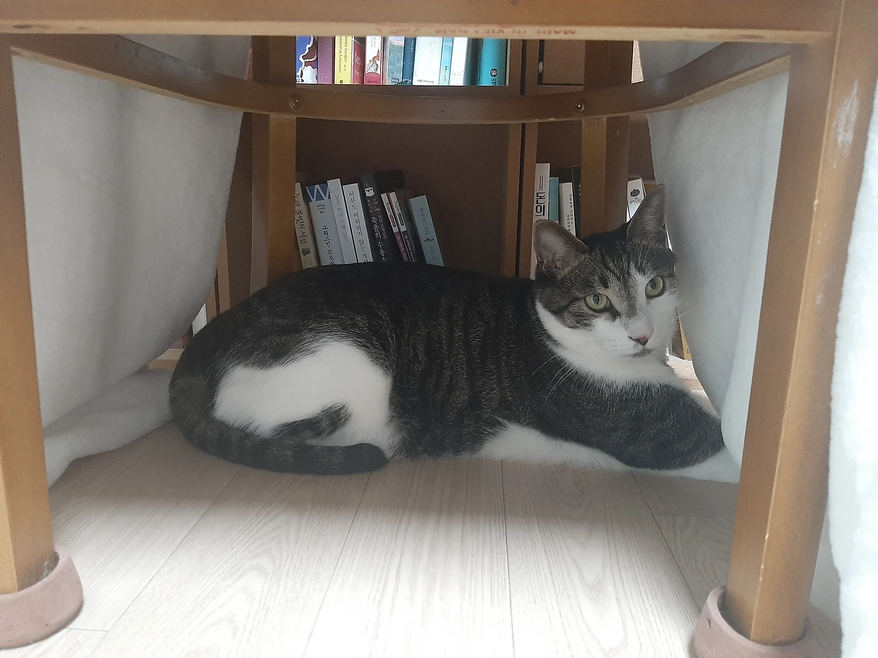 "나 의자 밑에 있으니까 알고나 있으라옹."