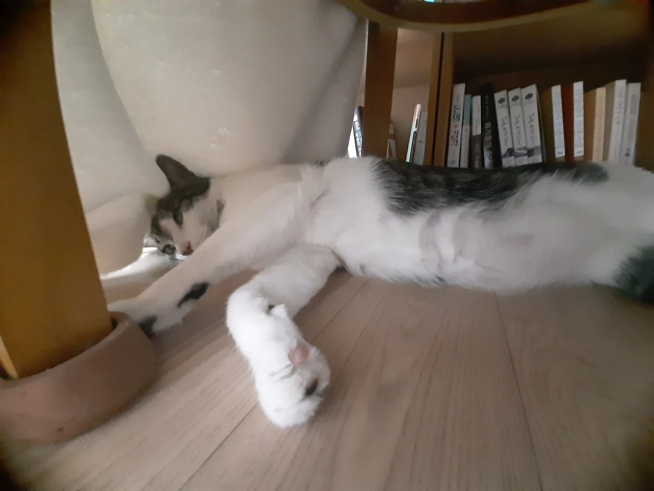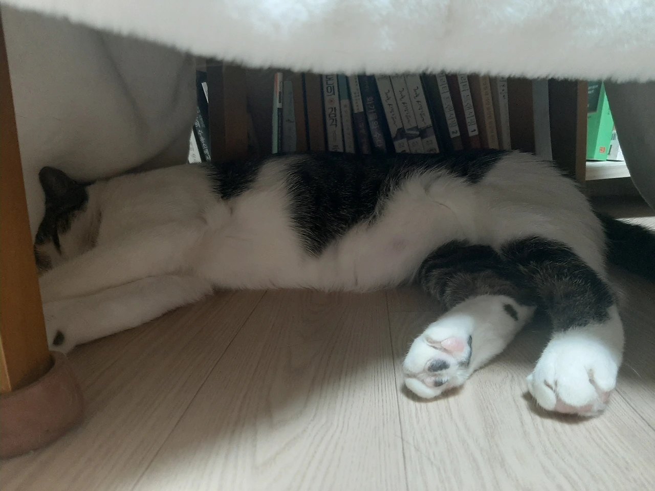 오래는 다시 오른쪽으로 와서 쓰담쓰담을 요청했고, 나는 딸기 먹기 미션을 완료한 후 오른손으로 오래의 몸을 구석구석 쓰다듬어 주었다.