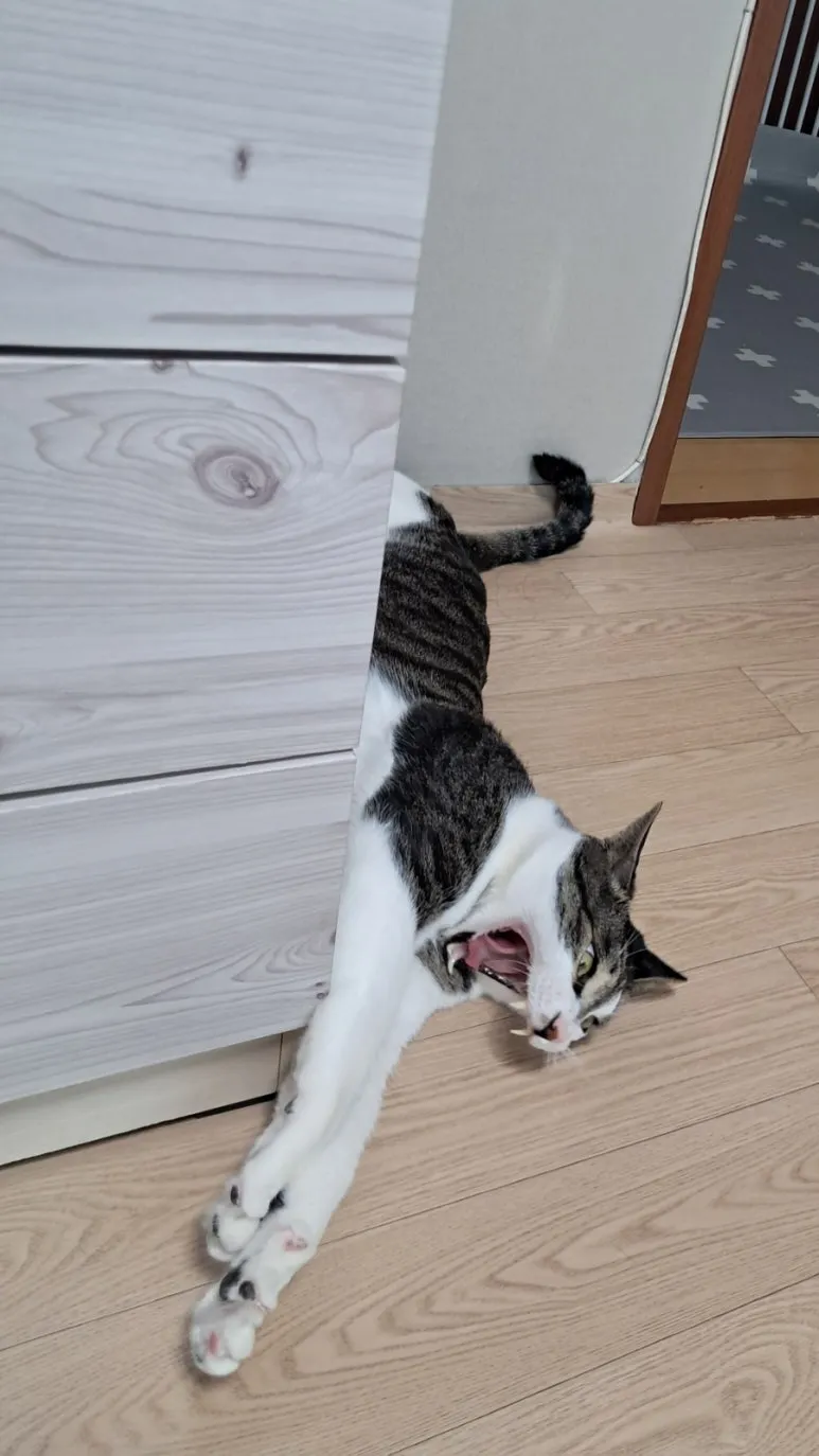 매우 역동적인 맹수의 모습이지만, 묘생 4년차로 사냥경험 전무... 앞으로도 계획 없음.. 지금껏 벌레를 발견하면 집사들이 잡아주었으며 앞으로도 계속 그러리라 믿고 있음.